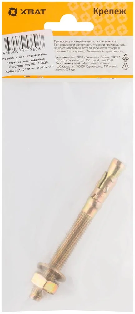 Анкер клиновой М 10 х 100 ( фасовка 1 10.) — крепёжный элемент для монтажа, фиксации и сборки конструкций.