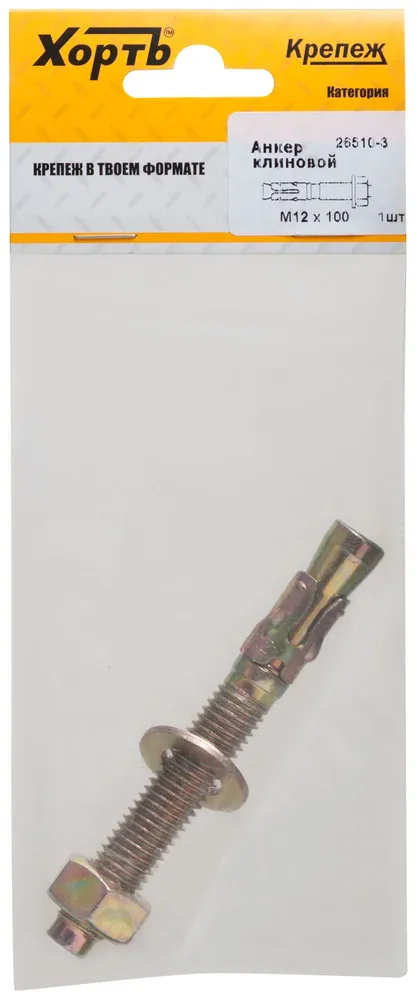 Анкер клиновой М 12 х 100 ( фасовка 1 10.) — крепёжный элемент для монтажа, фиксации и сборки конструкций.