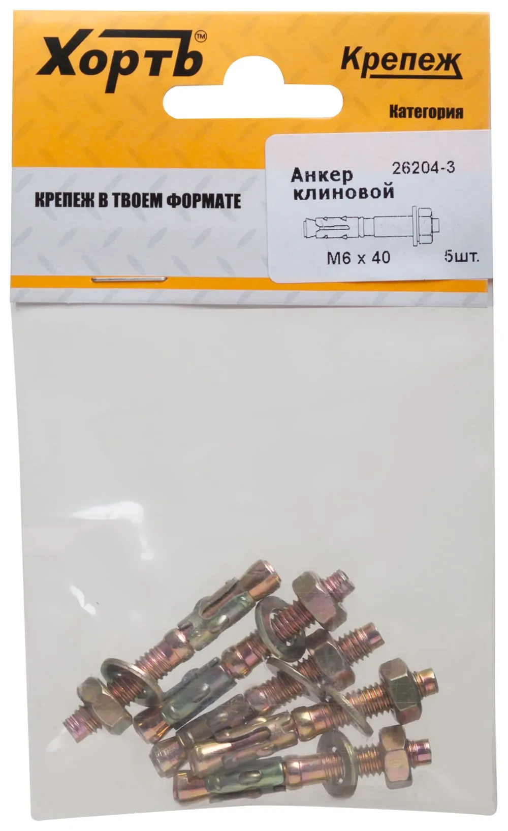 Анкер клиновой М 6 х 40 ( фасовка 5 10.) — крепёжный элемент для монтажа, фиксации и сборки конструкций.