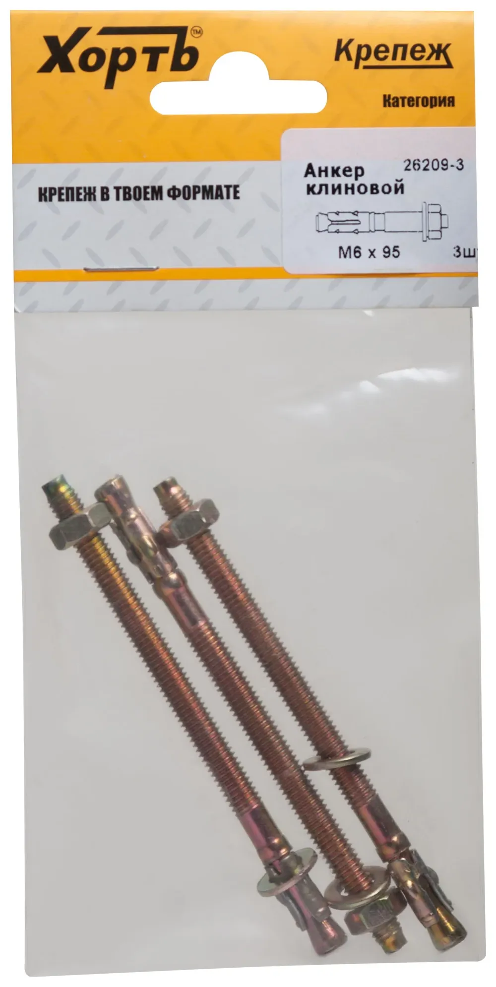 Анкер клиновой М 6 х 95 ( фасовка 3 10.) — крепёжный элемент для монтажа, фиксации и сборки конструкций.