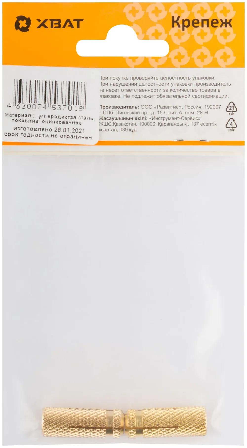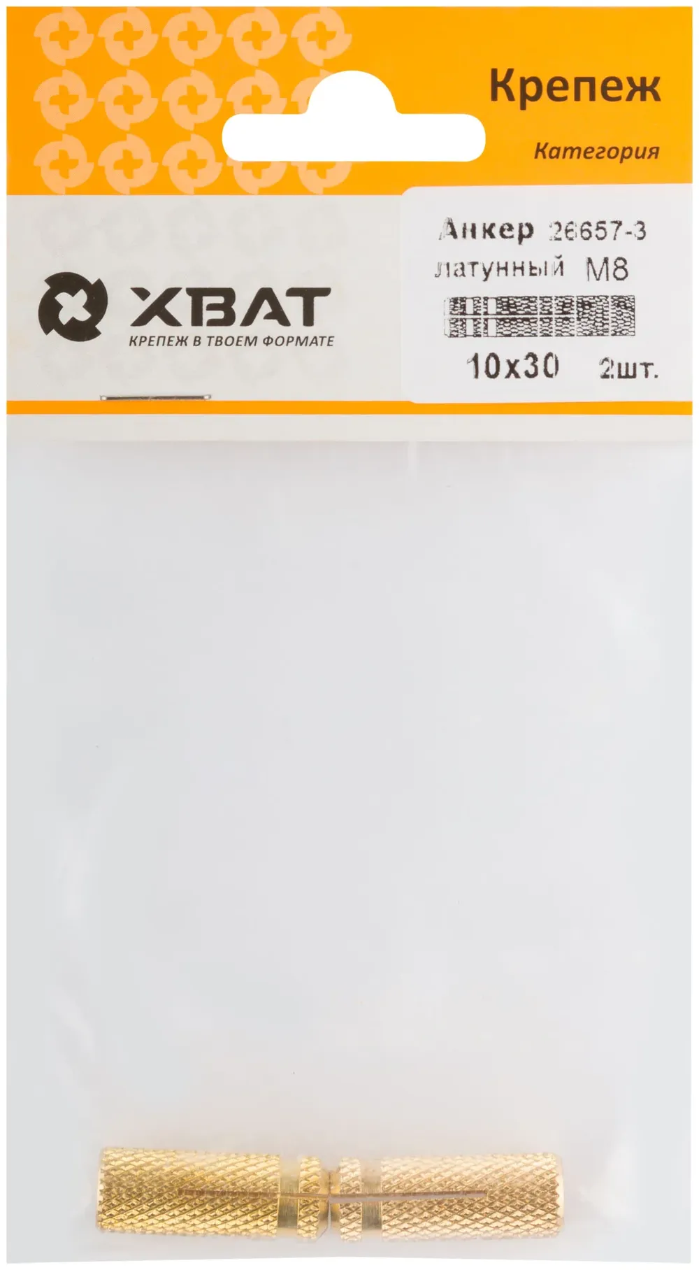 Анкер латунный М8, D 10х30 мм (фасовка 2 10) — крепёжный элемент для монтажа, фиксации и сборки конструкций.