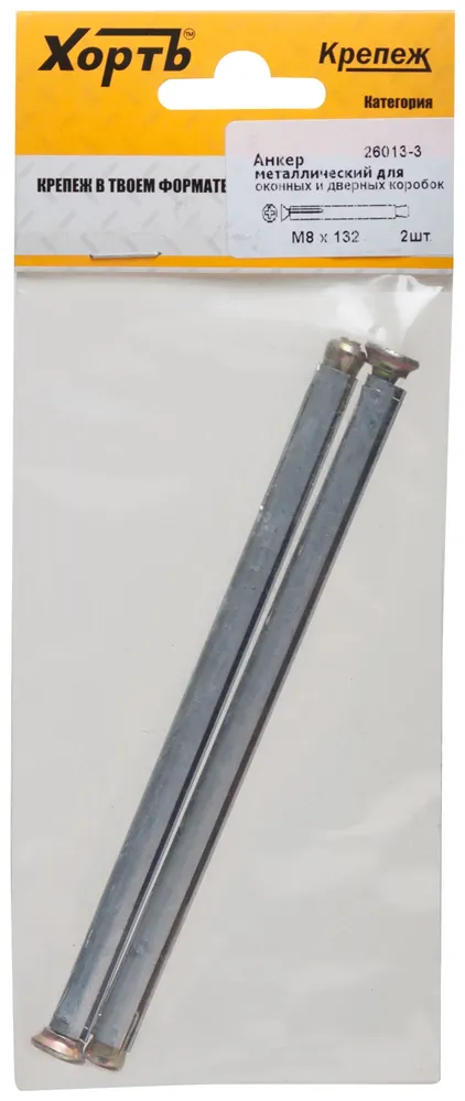 Анкер металлический для оконных и дверных коробок М 8 х 132 ( фасовка 2 10. ) — крепёжный элемент для монтажа, фиксации и сборки конструкций.