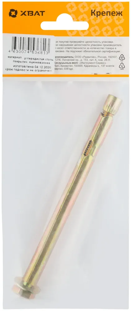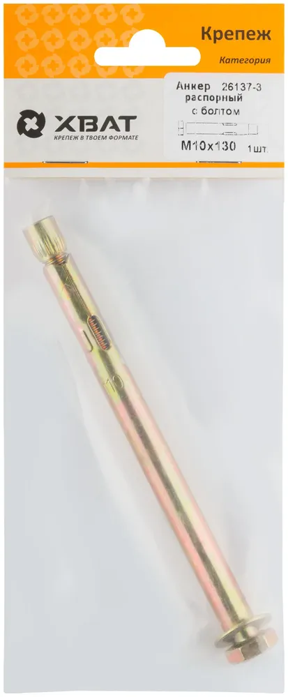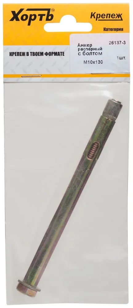 Анкер распорный с болтом 10х130 (фасовка 1 10) — крепёжный элемент для монтажа, фиксации и сборки конструкций.
