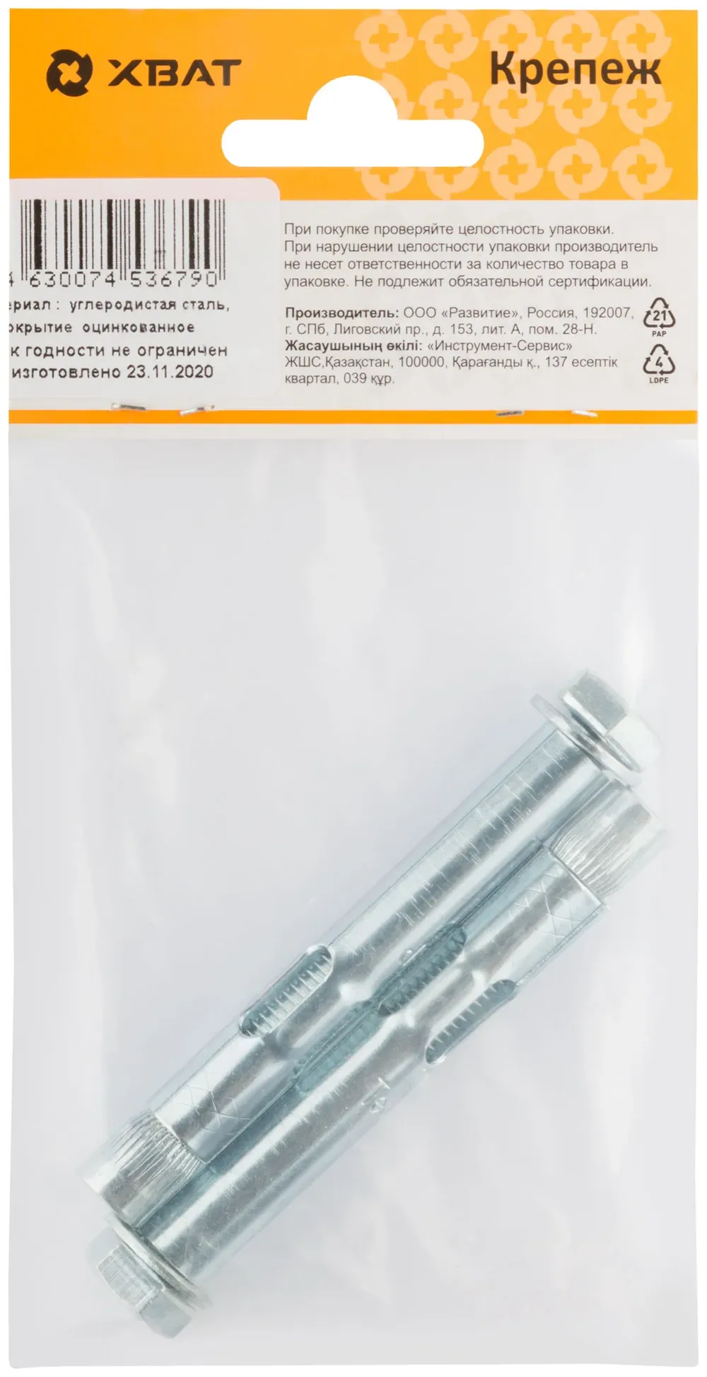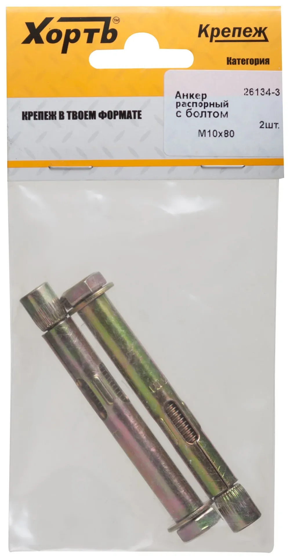 Анкер распорный с болтом 10х80 (фасовка 2 10) — крепёжный элемент для монтажа, фиксации и сборки конструкций.