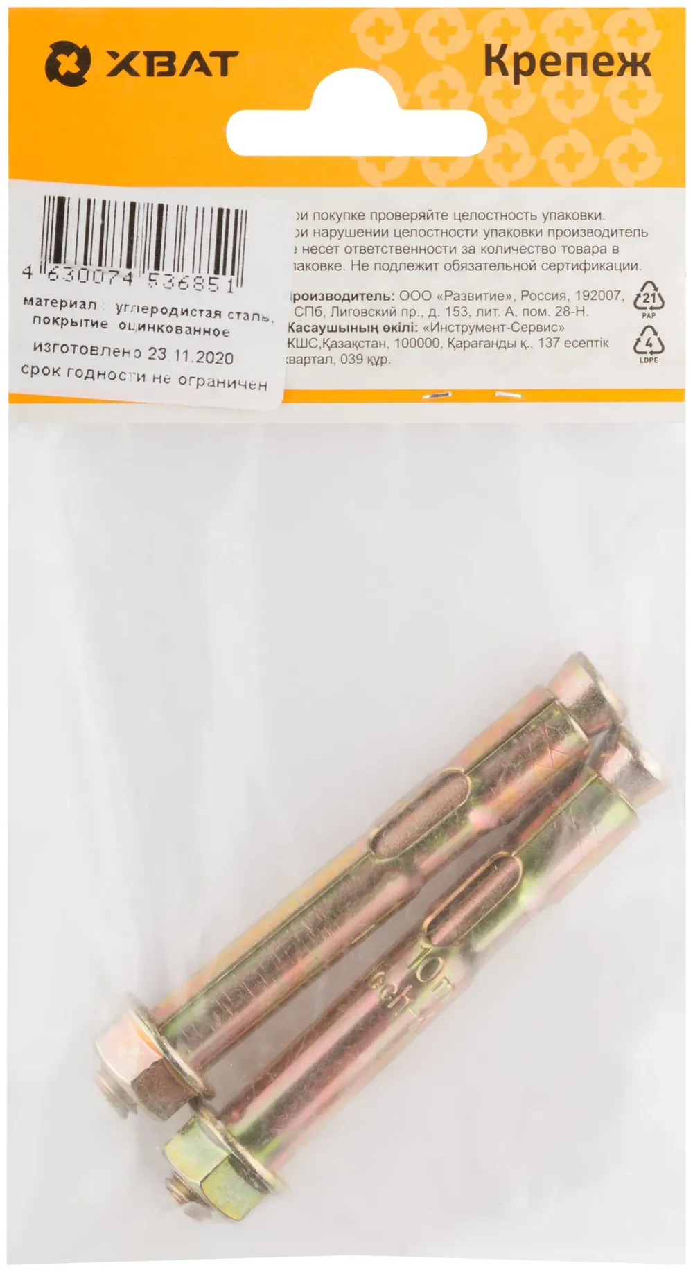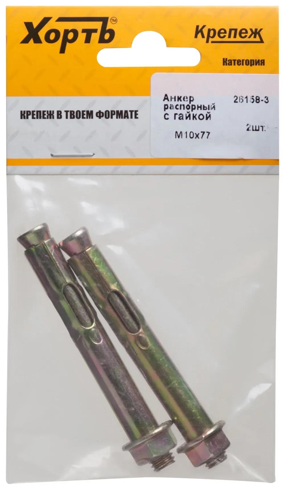 Анкер распорный с гайкой 10х77 (фасовка 2 10) — крепёжный элемент для монтажа, фиксации и сборки конструкций.