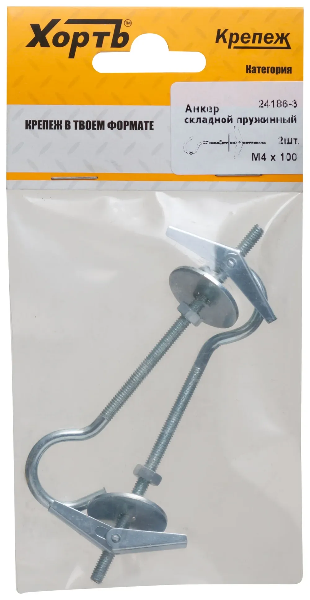Анкер складной пружинный М4 (фасовка 2 10.) — крепёжный элемент для монтажа, фиксации и сборки конструкций.