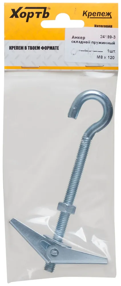 Анкер складной пружинный М8 (фасовка 1 10.) — крепёжный элемент для монтажа, фиксации и сборки конструкций.