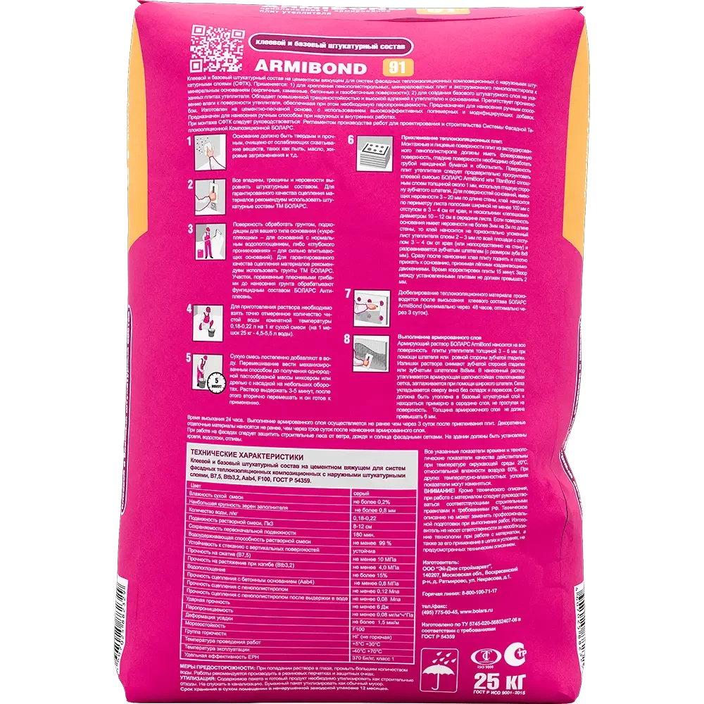 БОЛАРС ARMIBOND клей для минваты, ппс и пеноплэкс 25 кг — строительный материал для тепло-, паро- и гидроизоляционных работ.