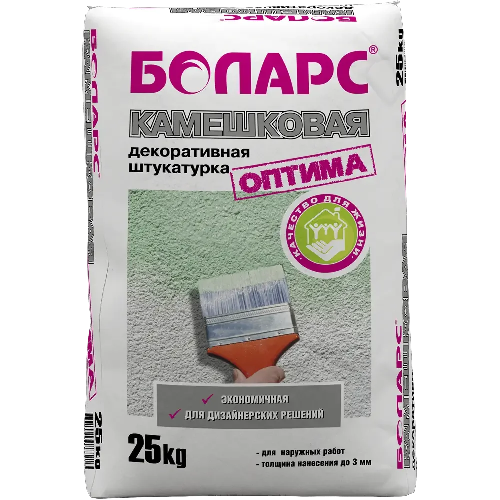 БОЛАРС Декоративная штукатурка КАМЕШКОВАЯ ОПТИМА (1,5мм/2,5мм) 25 кг — материал для отделочных работ для подготовки, укладки и финишной отделки поверхностей.