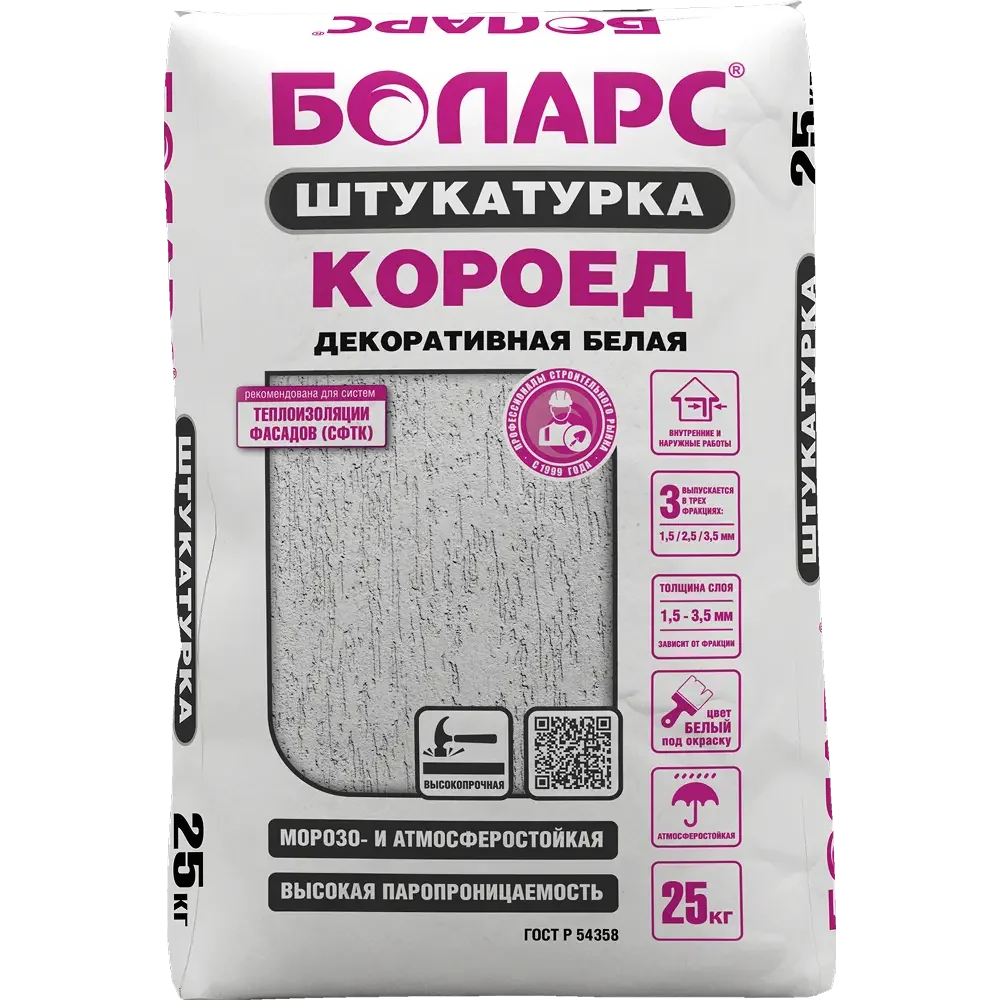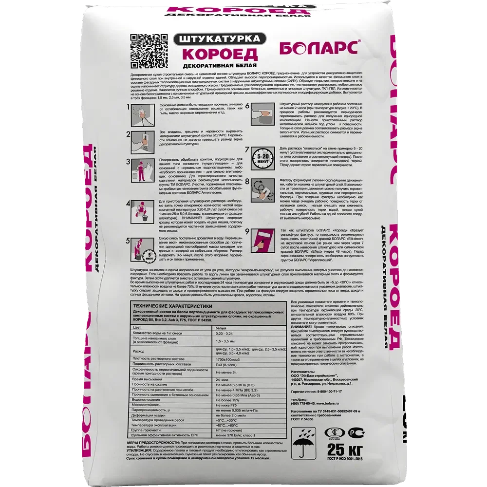 БОЛАРС Декоративная штукатурка КОРОЕД (1,5мм/2,5мм) 25 кг — материал для отделочных работ для подготовки, укладки и финишной отделки поверхностей.