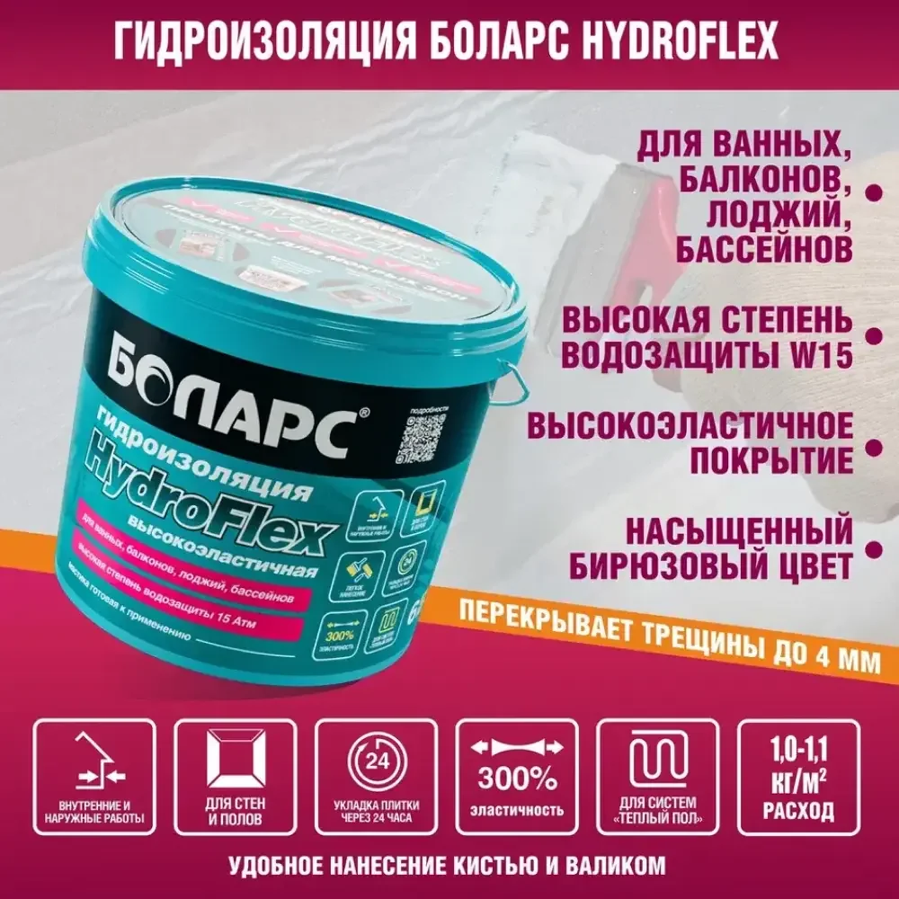БОЛАРС Гидроизоляция HydroFlex — строительный материал для тепло-, паро- и гидроизоляционных работ.