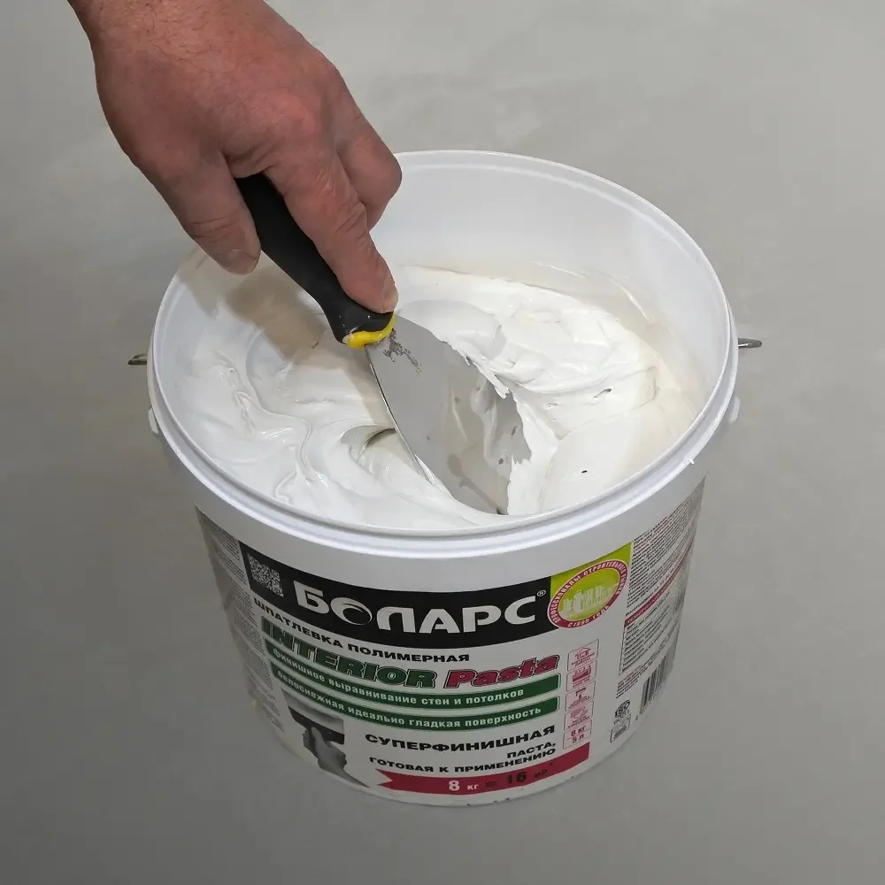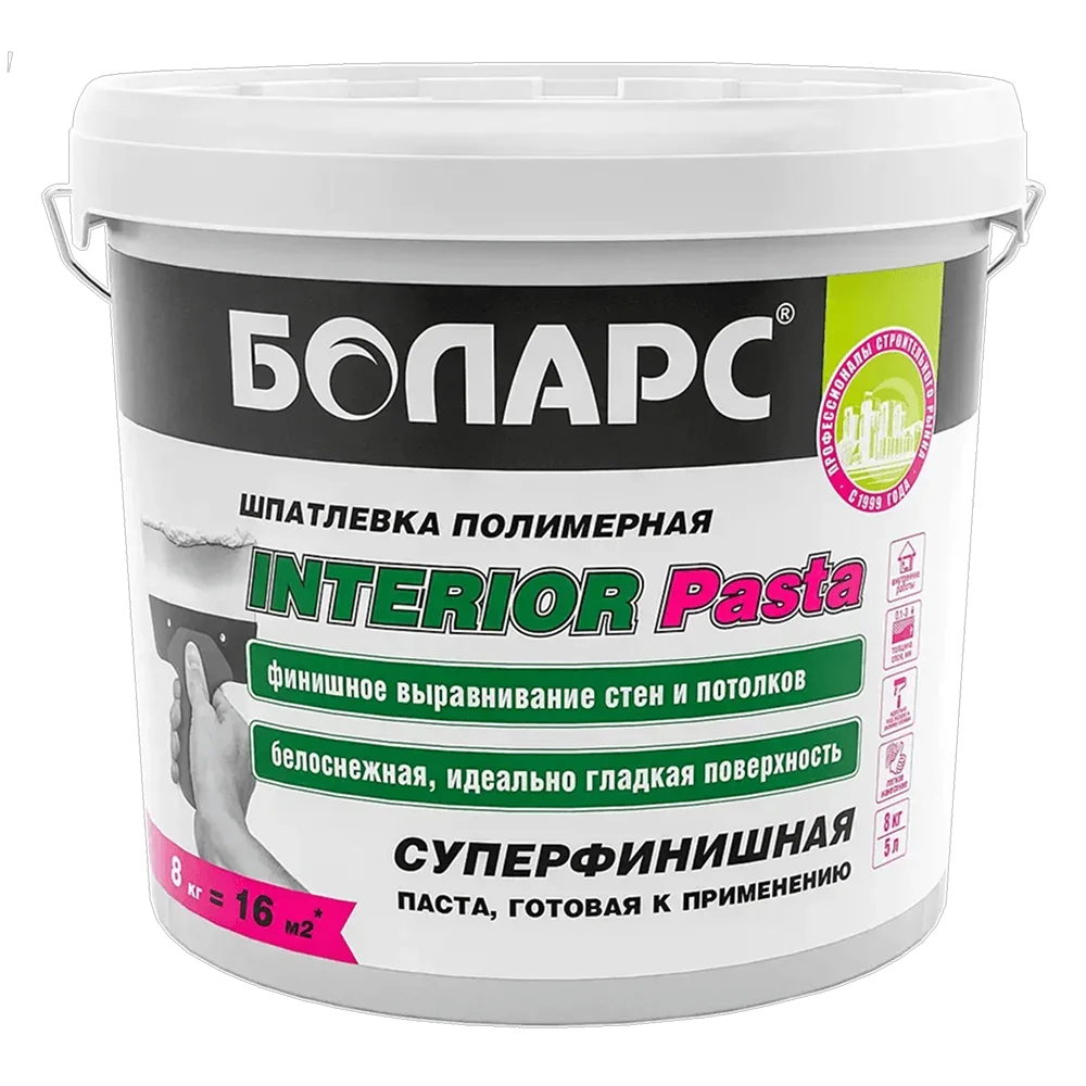 БОЛАРС Готовая шпатлевка INTERIOR PASTA 28 кг — материал для отделочных работ для подготовки, укладки и финишной отделки поверхностей.