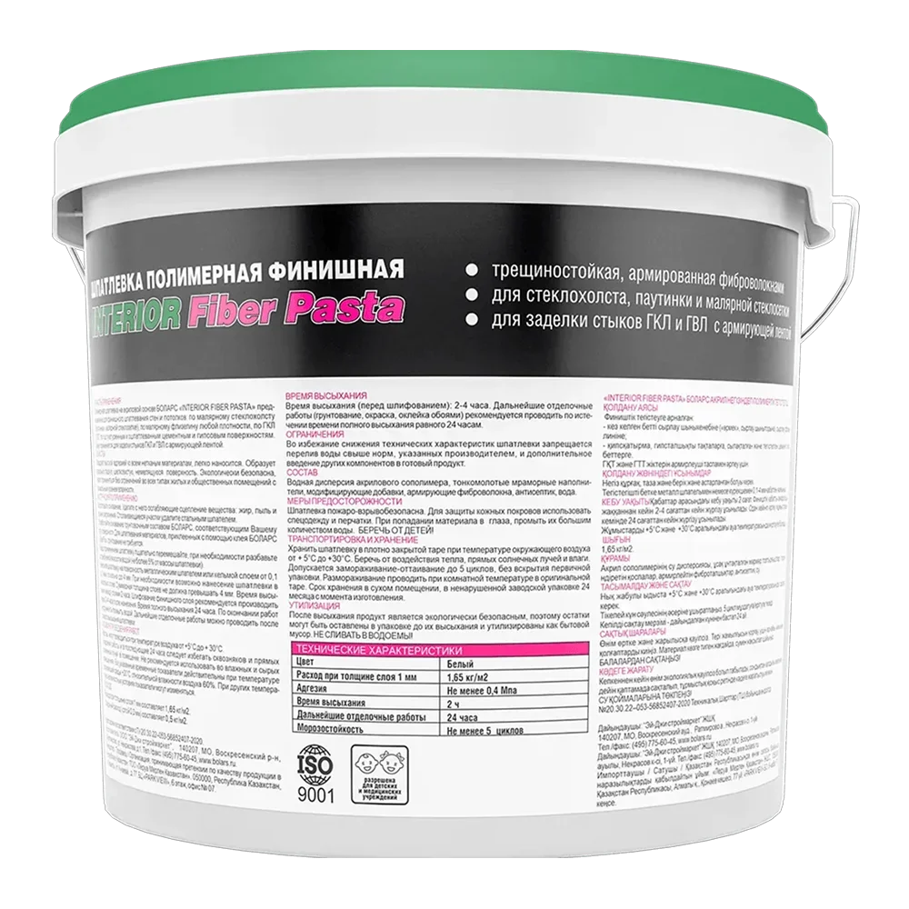 БОЛАРС Готовая шпатлевка INTERIOR PASTA 8 кг — материал для отделочных работ для подготовки, укладки и финишной отделки поверхностей.