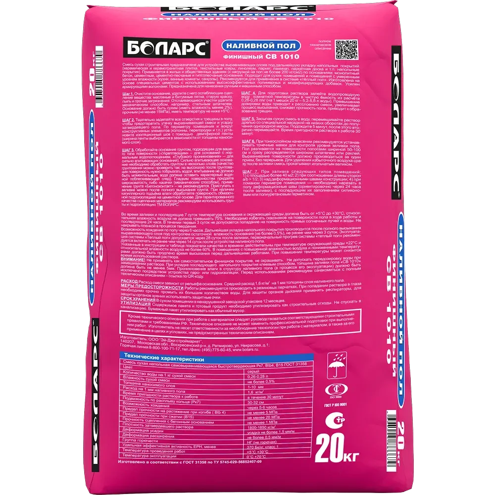 БОЛАРС Наливной пол СВ — материал для отделочных работ для подготовки, укладки и финишной отделки поверхностей.