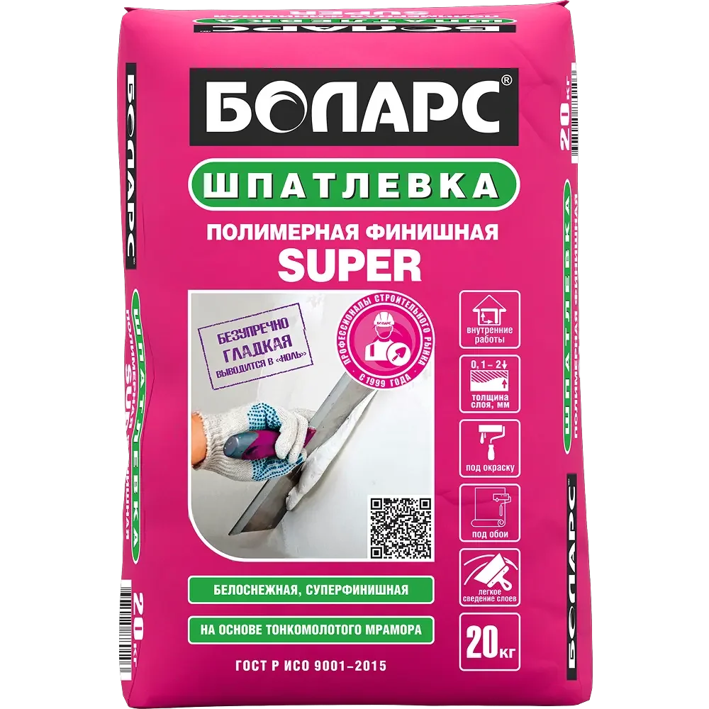 БОЛАРС шпатлевка финишная super (белоснежная) 20 кг — материал для отделочных работ для подготовки, укладки и финишной отделки поверхностей.