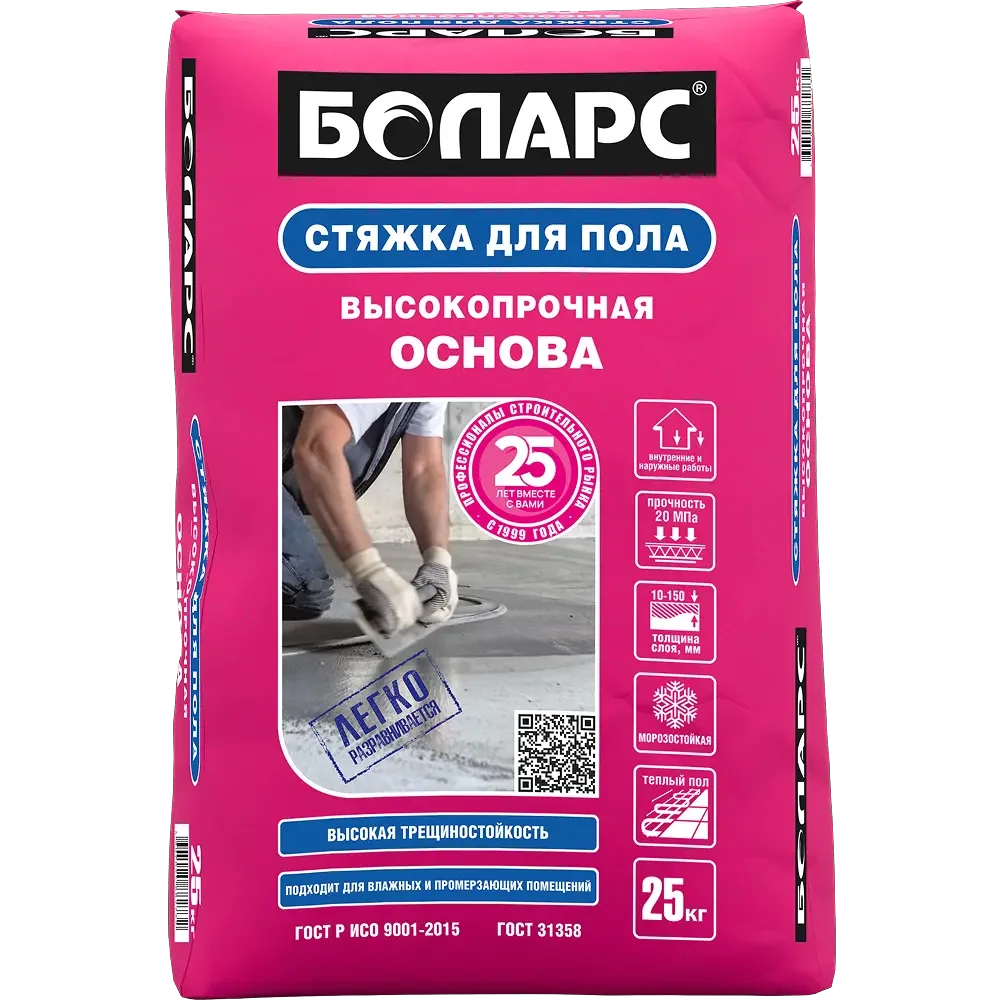 БОЛАРС Стяжка для пола высокопрочная основа, 25 кг — материал для отделочных работ для подготовки, укладки и финишной отделки поверхностей.