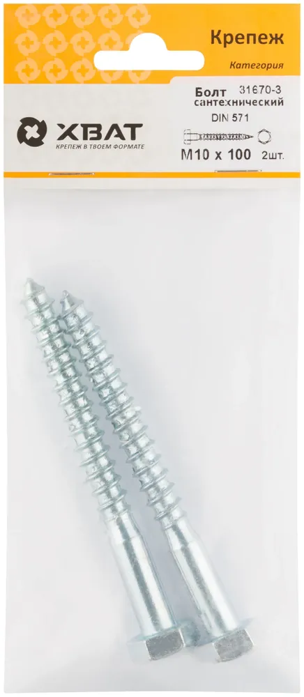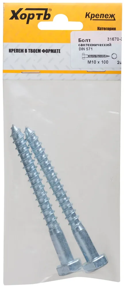 Болт сантехнический DIN 571 10/100 (фасовка 2 10.) — крепёжный элемент для монтажа, фиксации и сборки конструкций.