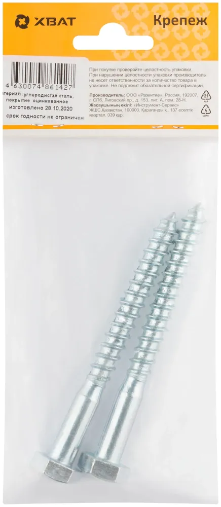Купить недорого Болт сантехнический DIN 571 10/100 (фасовка 2 10.) в Москве