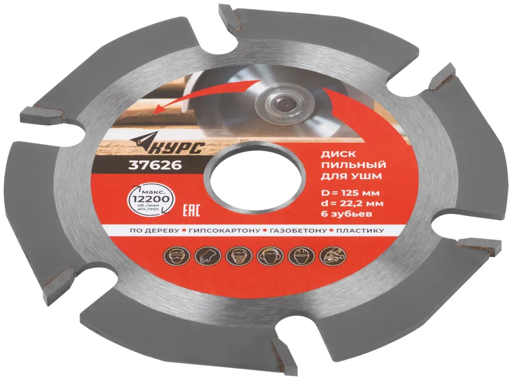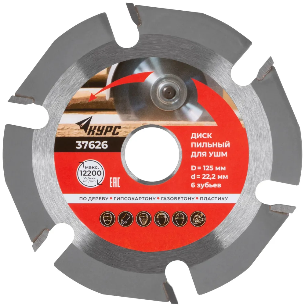Диск пильный по дереву, посадочный диаметр 22,2 мм, 6 зубьев с карбидными вставками, 125 мм — оснастка для инструмента для сверления, резки, шлифования, зачистки и демонтажа.