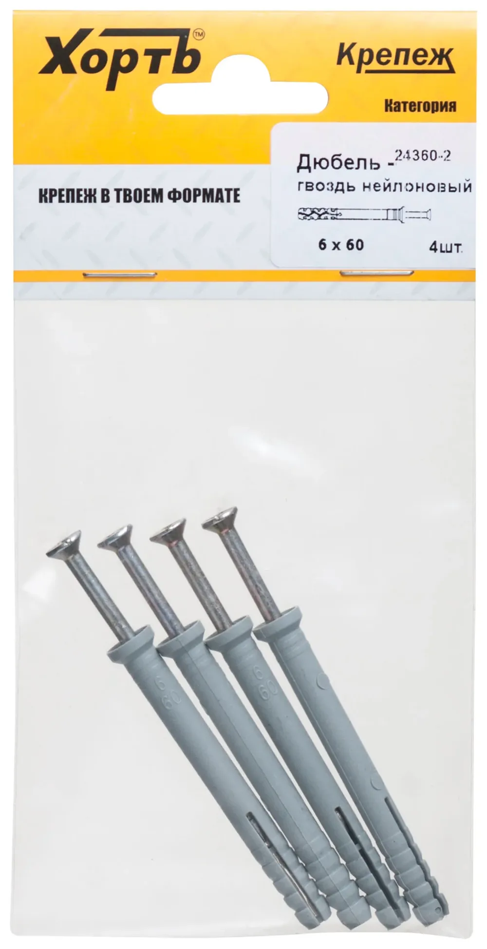 Дюбель-гвоздь полипропиленовый 6 х 60 ( фасовка 4 10.) — крепёжный элемент для монтажа, фиксации и сборки конструкций.