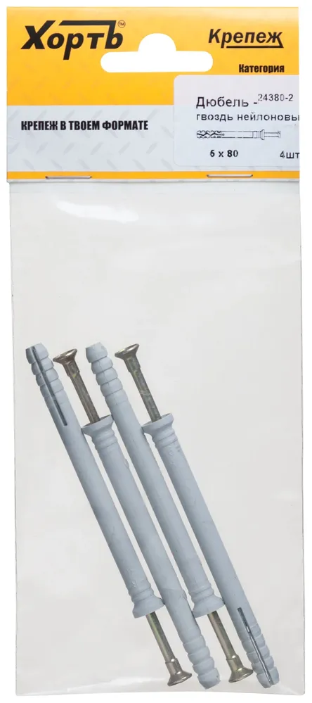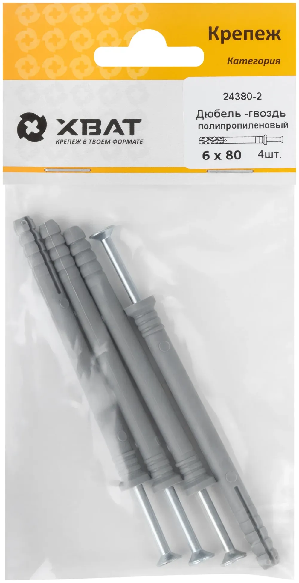Дюбель-гвоздь полипропиленовый 6 х 80 ( фасовка 4 10.) — крепёжный элемент для монтажа, фиксации и сборки конструкций.
