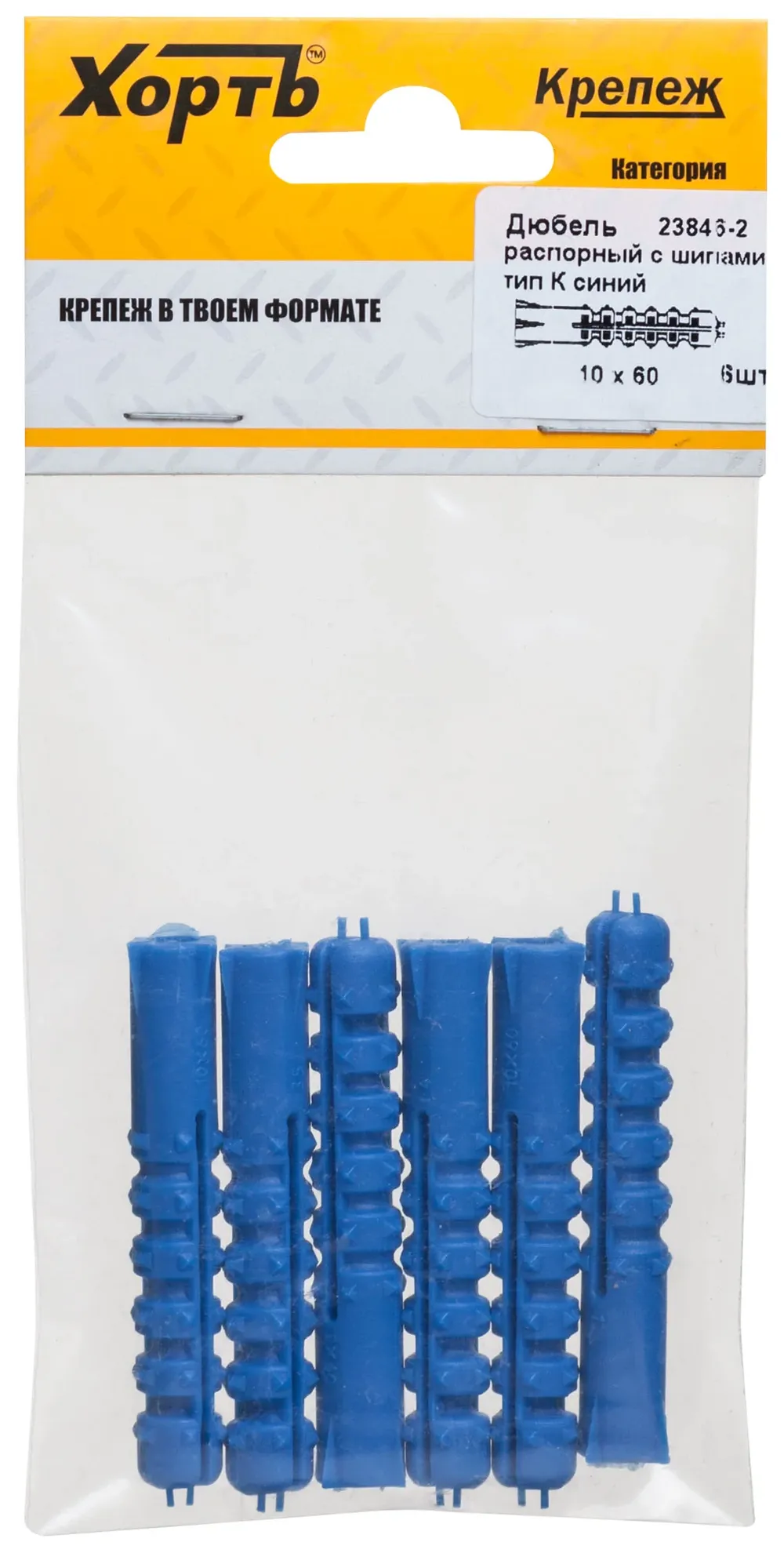 Дюбель распорный с шипами тип К синий 10 х 60 (фасовка 6 10.) — крепёжный элемент для монтажа, фиксации и сборки конструкций.