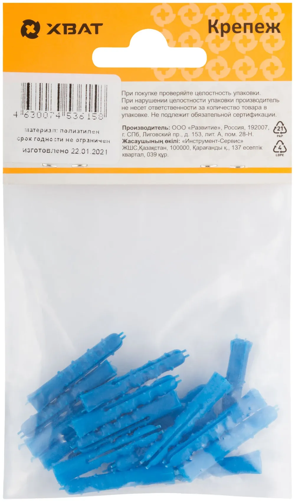 Купить недорого Дюбель распорный с шипами тип К синий 5 х 30 (фасовка 18 10.) в Москве