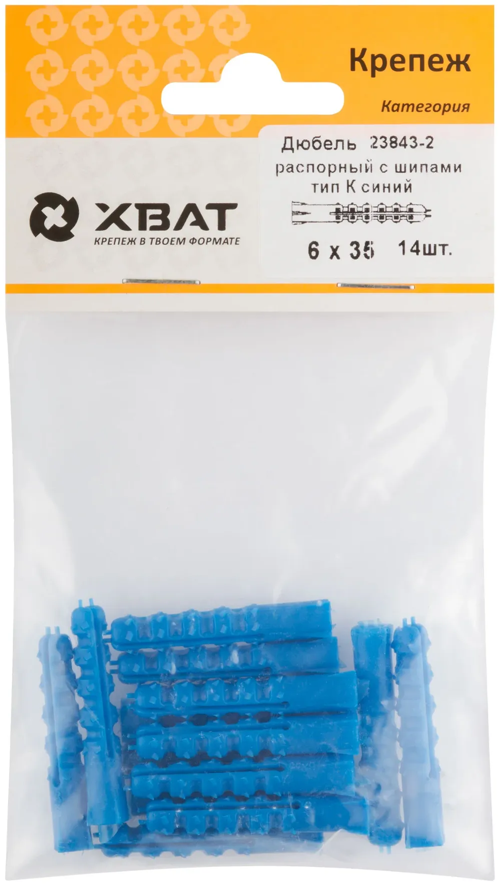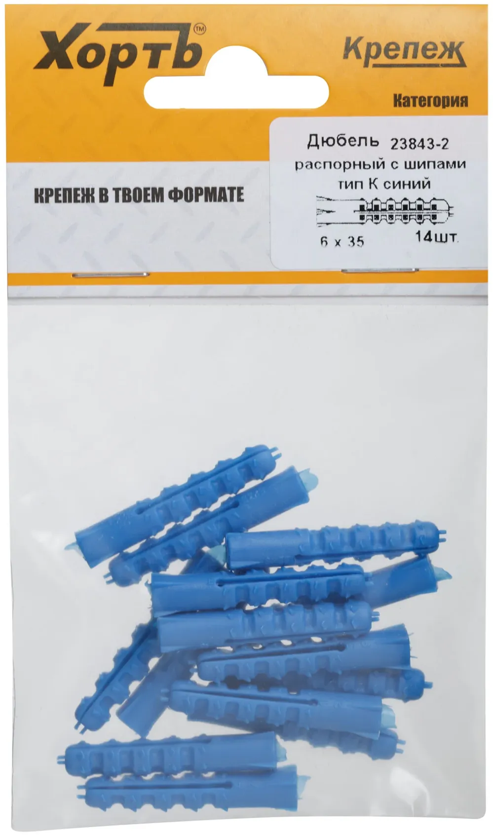 Дюбель распорный с шипами тип К синий 6 х 35 (фасовка 14 10.) — крепёжный элемент для монтажа, фиксации и сборки конструкций.