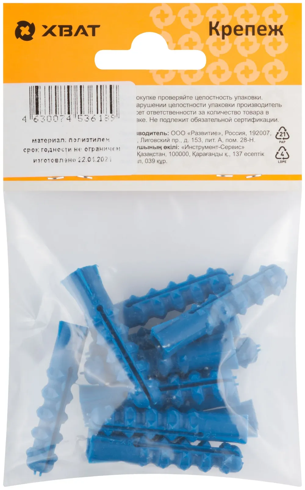 Купить недорого Дюбель распорный с шипами тип К синий 8 х 40 (фасовка 12 10.) в Москве