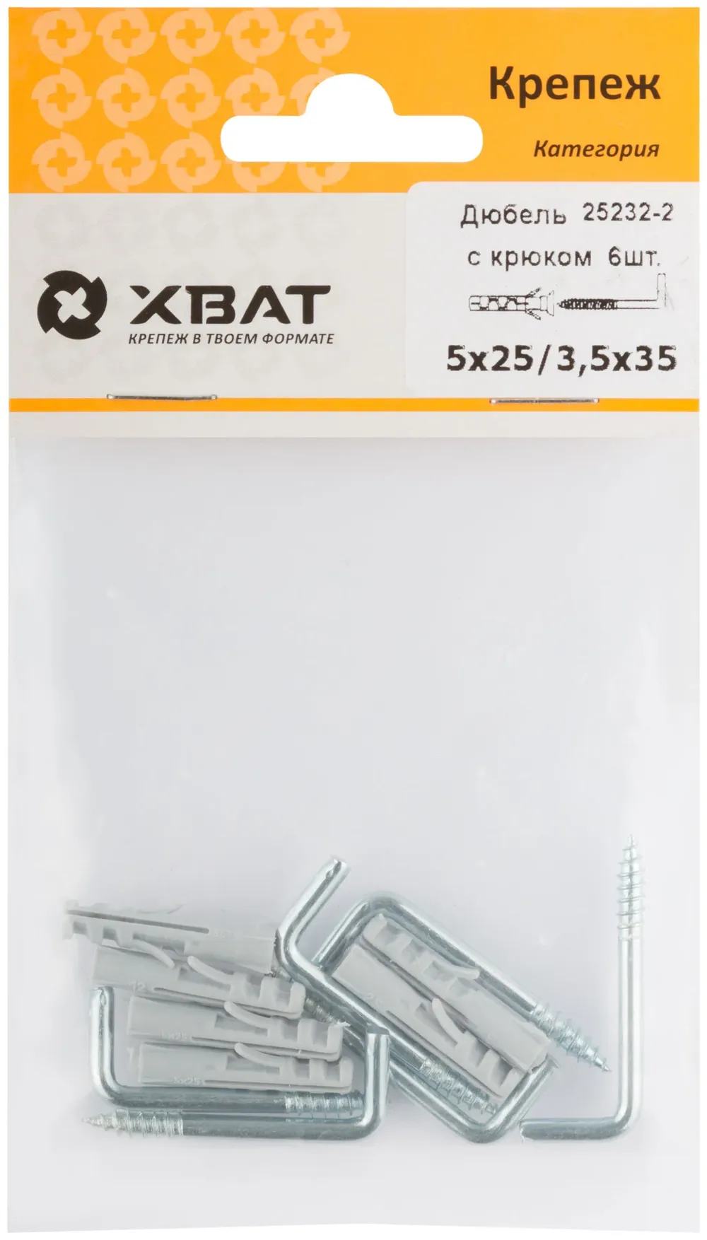 Дюбель с крюком 5х25/3,5 х35 (фасовка по 6 10.) — крепёжный элемент для монтажа, фиксации и сборки конструкций.
