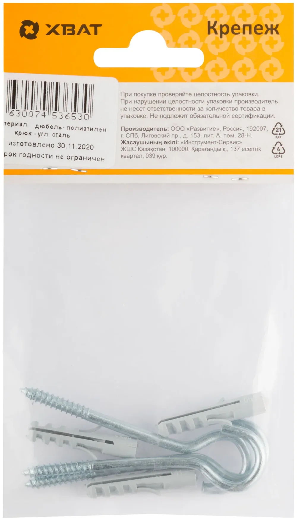 Дюбель с полукольцом 6х30/4,0х65 (фасовка по 3 10.) — крепёжный элемент для монтажа, фиксации и сборки конструкций.