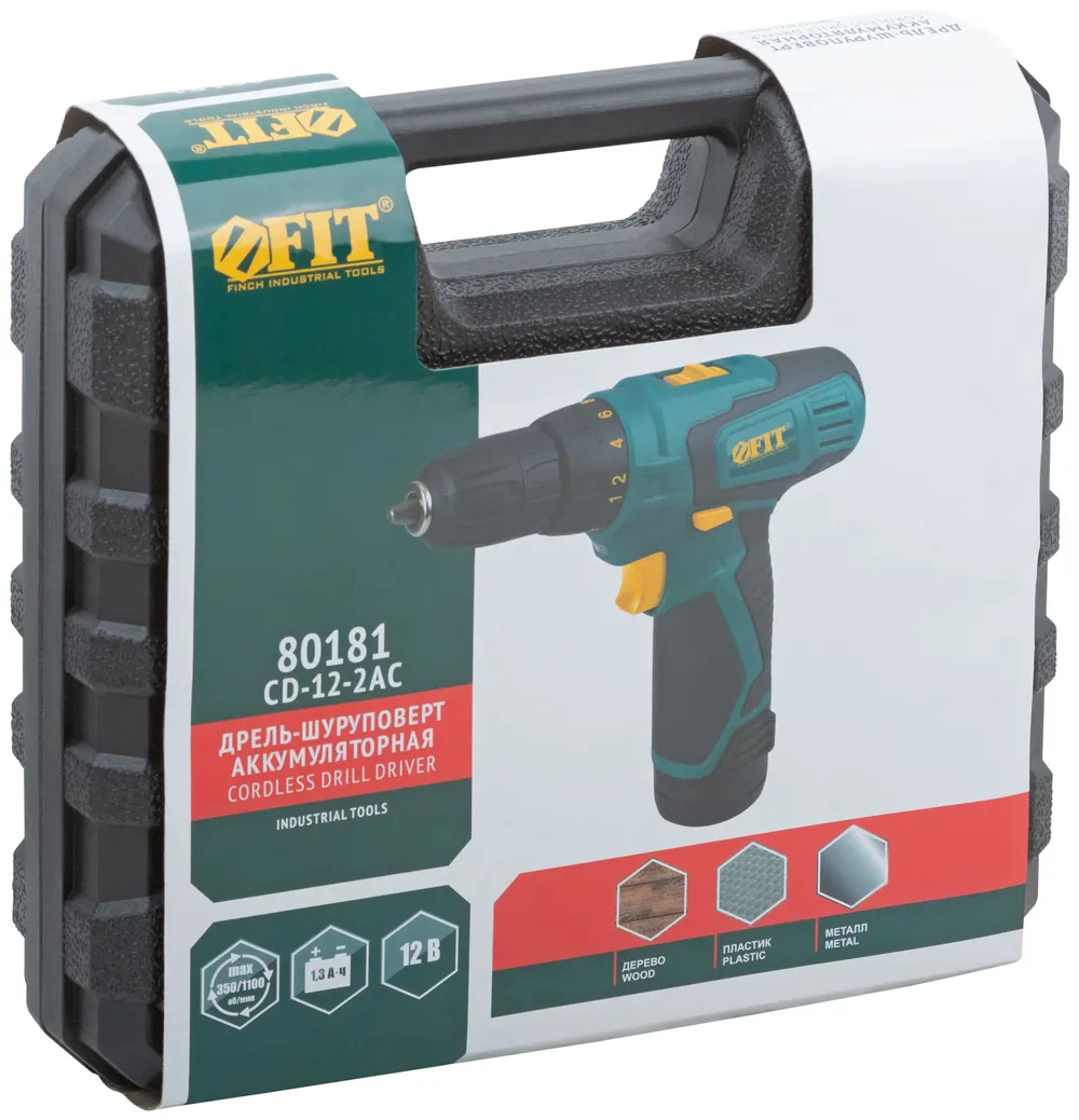 Купить недорого Дрель-Шуруповерт акк. 12 В; 0-350/1100 об/мин; 20 Нм; 2 (Li-Ion) 1,3 Ач; 1 ч.; рез. накл.; кейс в Москве
