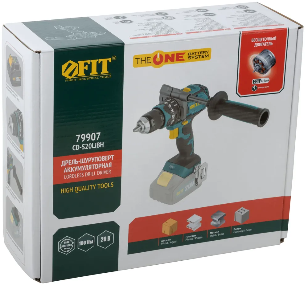 Купить недорого Дрель-Шуруповерт Акк. Бесщеточная; 20,0 В; 0-500/2000 об/мин; 100 Нм; рез. накл.; коробка в Москве