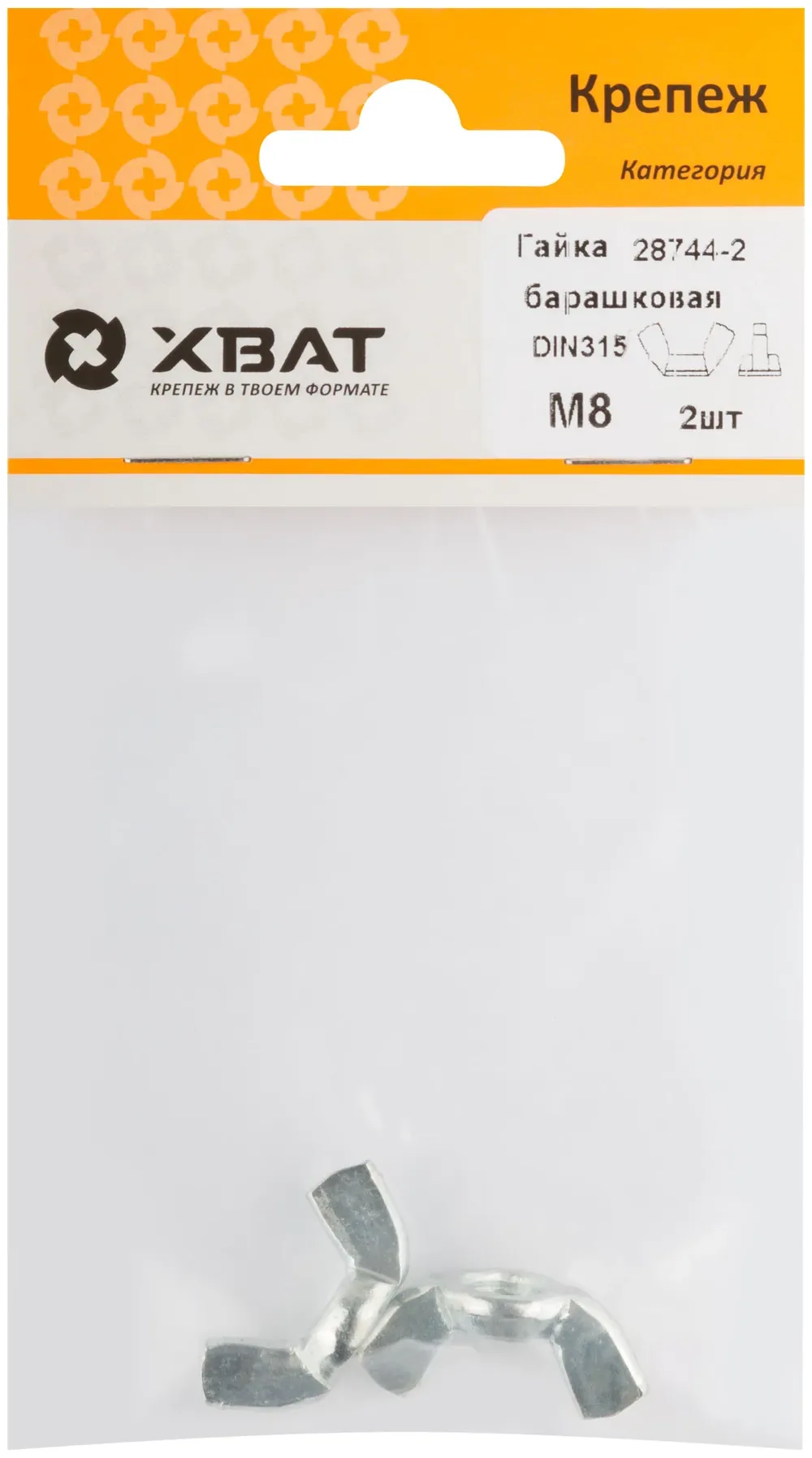 Гайка барашковая (DIN 315) М8 (фасовка 2 10) — крепёжный элемент для монтажа, фиксации и сборки конструкций.