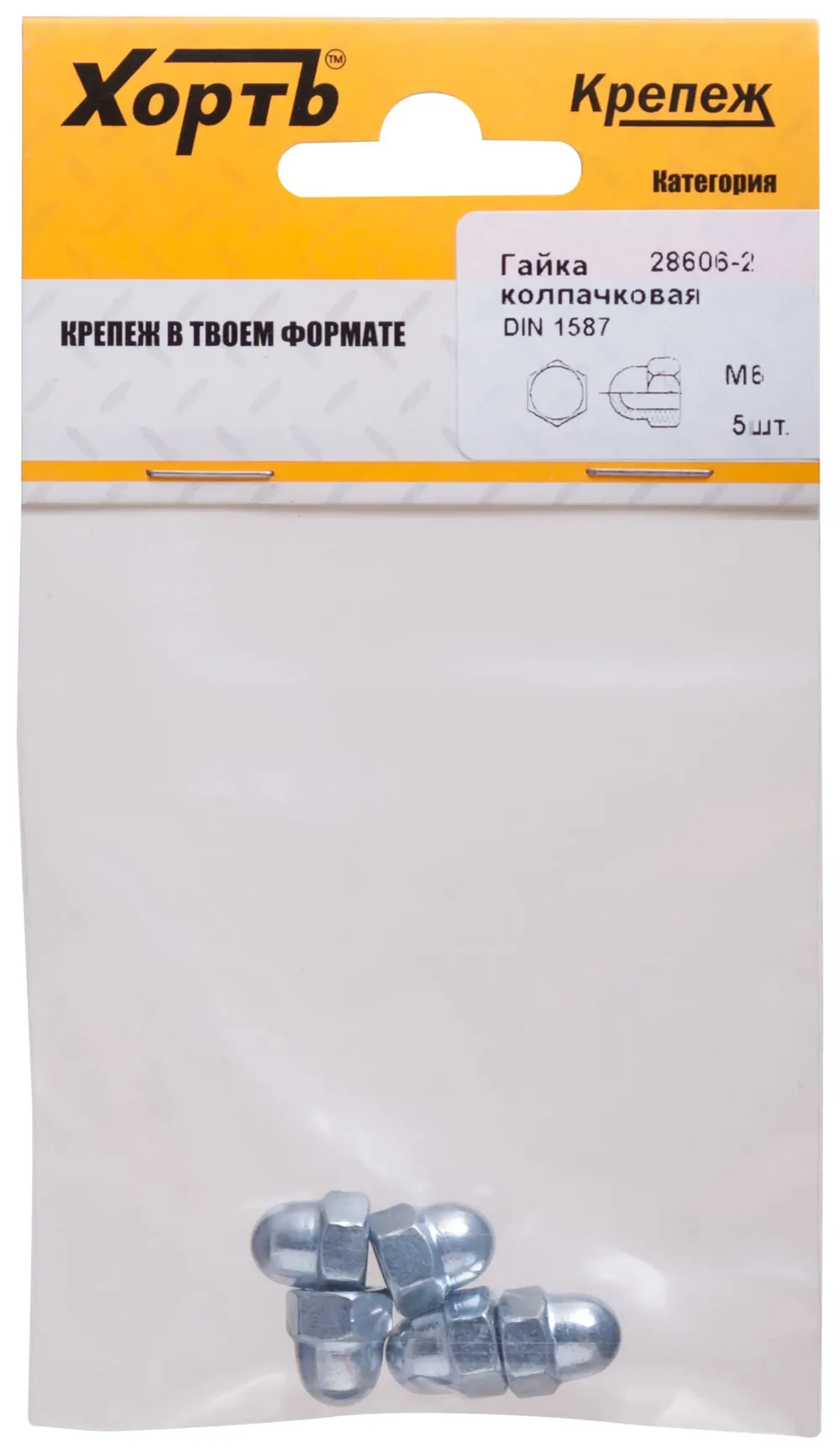 Гайка колпачковая М6 ( фасовка 5 10 ) DIN1587 — крепёжный элемент для монтажа, фиксации и сборки конструкций.