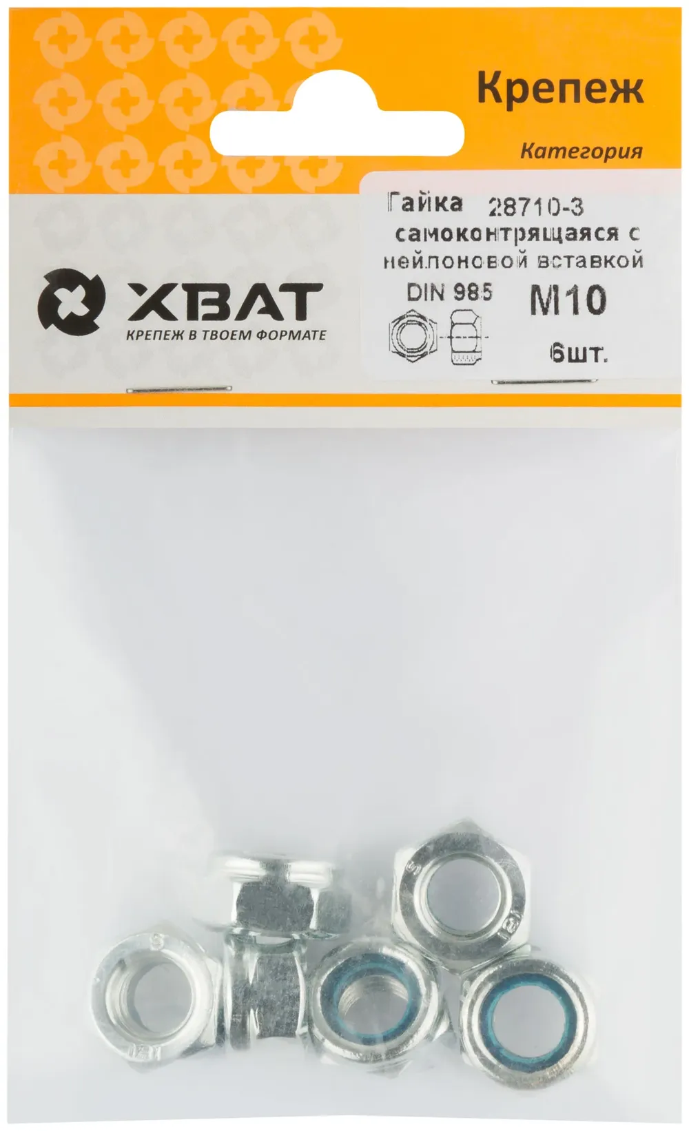 Гайка самоконтрящаяся с нейлоновой вставкой М10 DIN 985 (фасовка 6 10.) — крепёжный элемент для монтажа, фиксации и сборки конструкций.