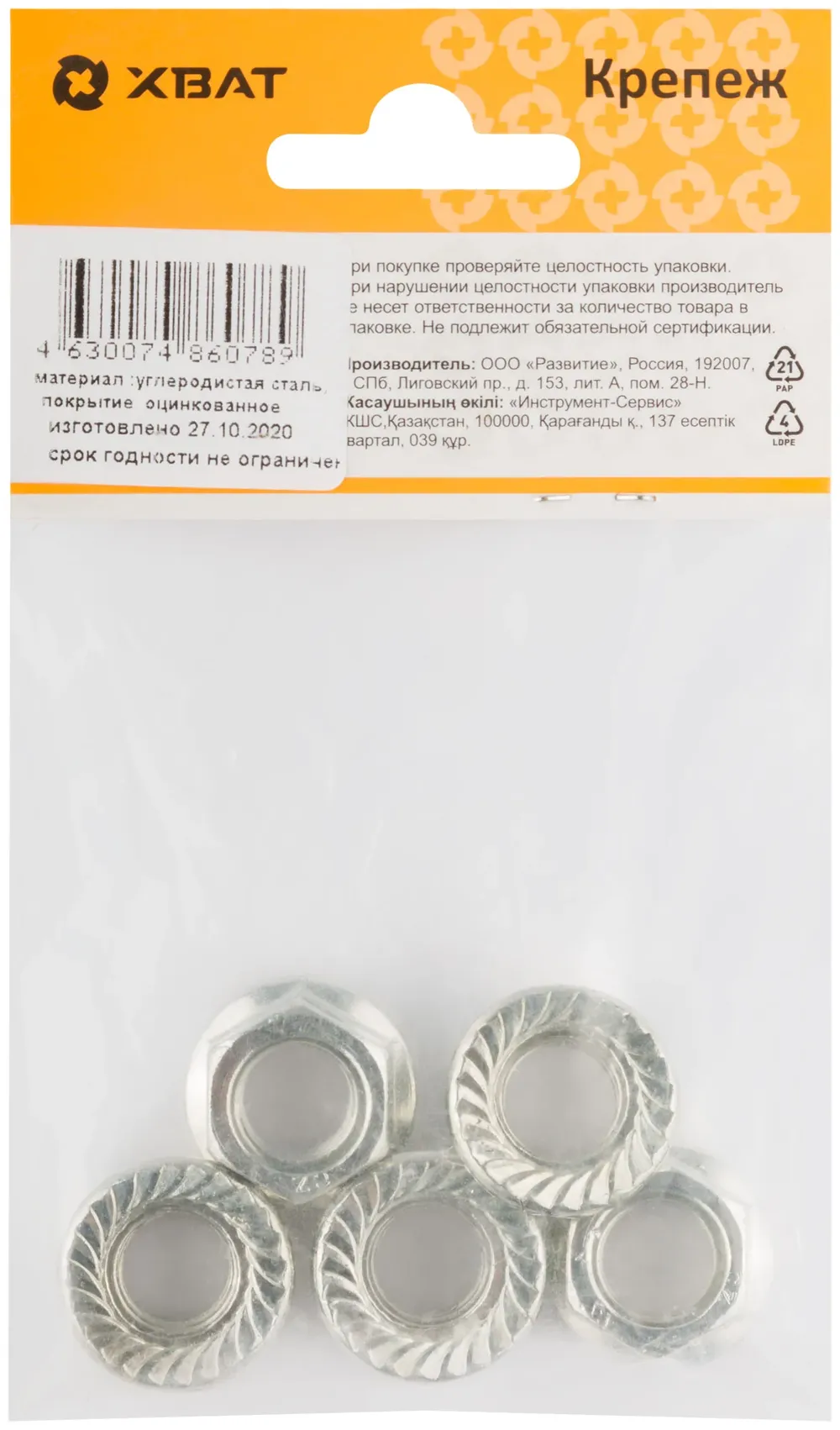 Гайка шестигранная с фланцем (DIN 6923) М12 (фасовка 6 10) — крепёжный элемент для монтажа, фиксации и сборки конструкций.