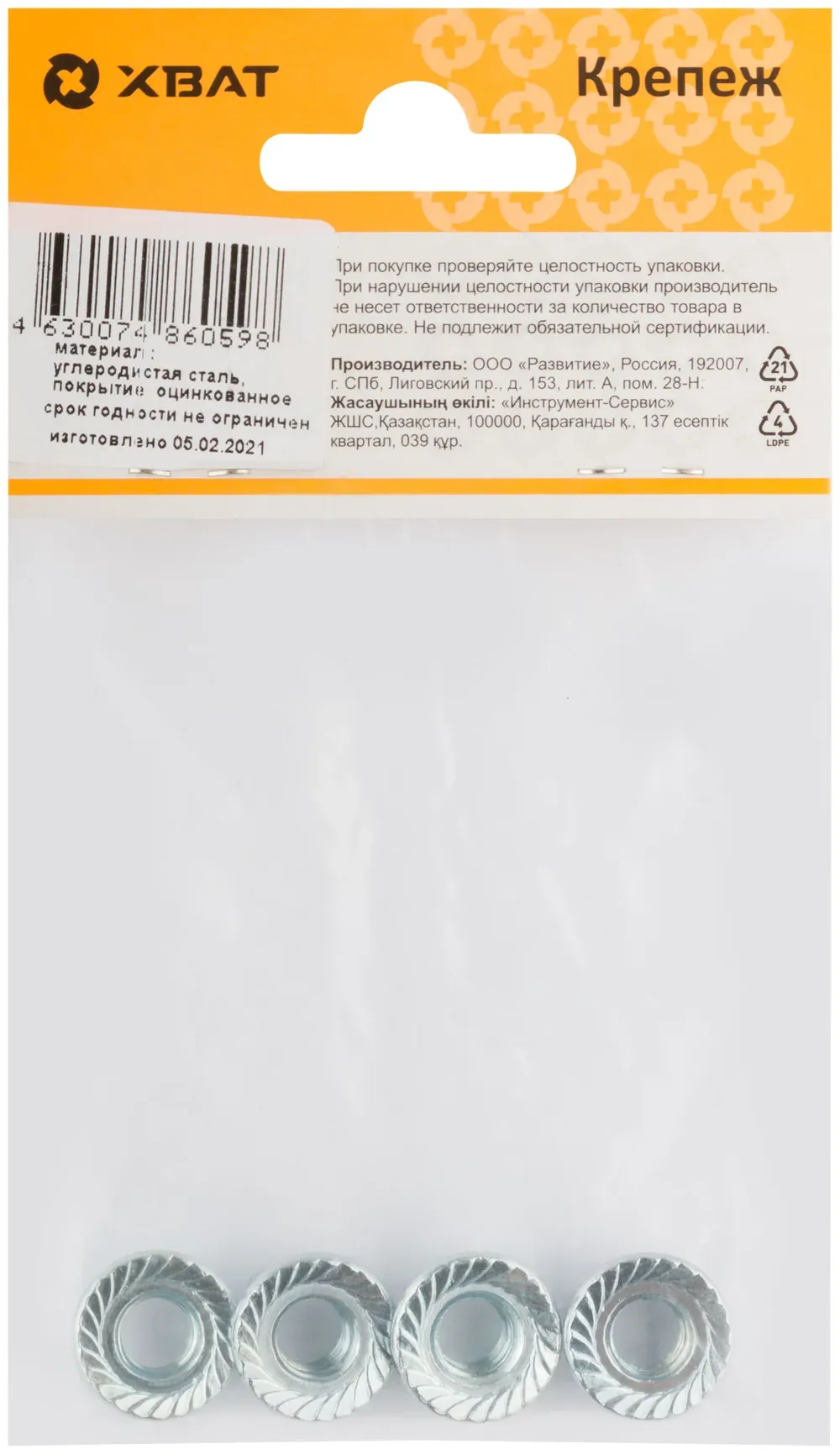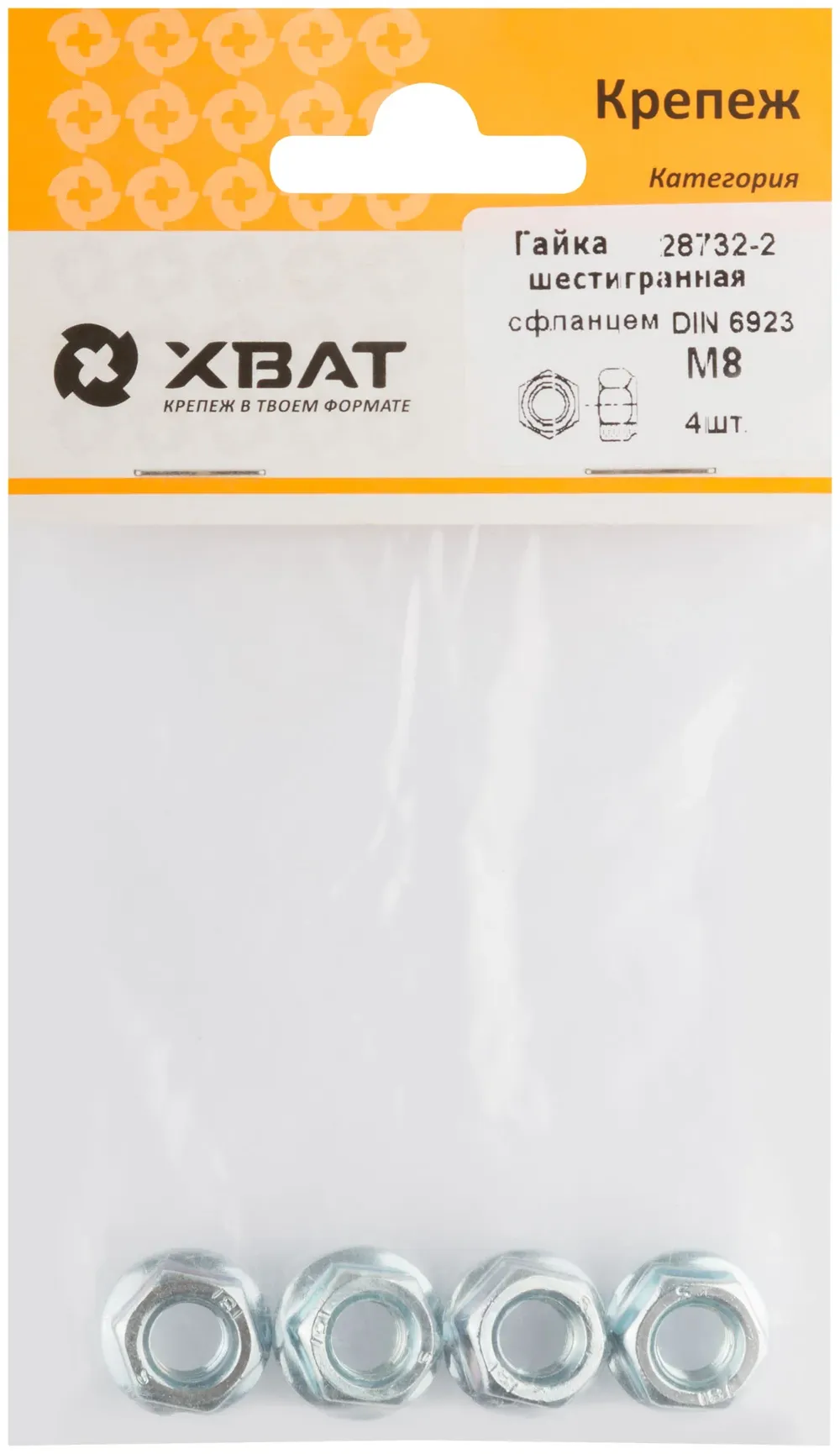 Гайка шестигранная с фланцем (DIN 6923) М8 (фасовка 4 10) — крепёжный элемент для монтажа, фиксации и сборки конструкций.