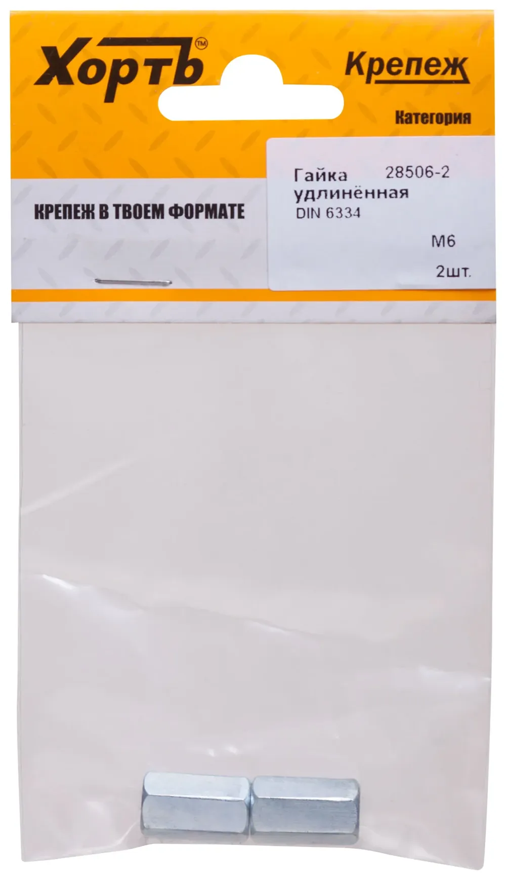 Гайка удлиненная М6 DIN 6334 (фасовка 2 10.) — крепёжный элемент для монтажа, фиксации и сборки конструкций.