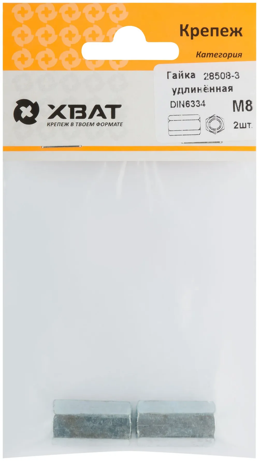 Гайка удлиненная М8 DIN 6334 (фасовка 2 10.) — крепёжный элемент для монтажа, фиксации и сборки конструкций.