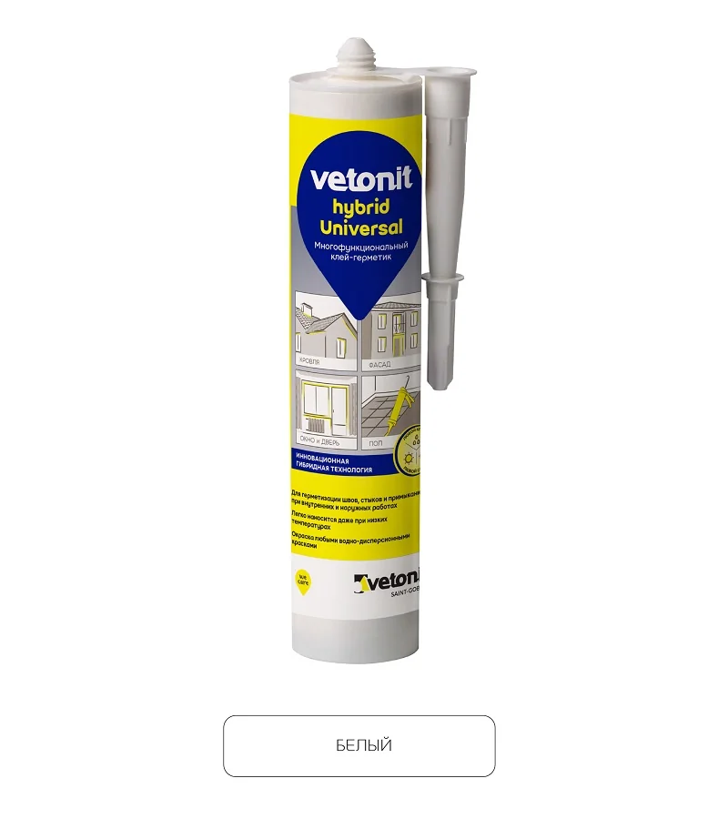 Герметик гибридный Ветонит Vetonit Hybrid Universal белый, 280мл — товар для строительных и ремонтных работ для строительных, монтажных и хозяйственных задач.