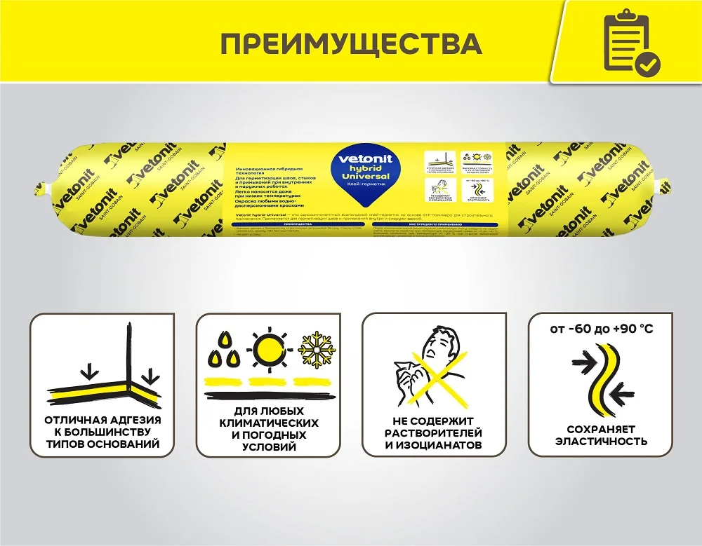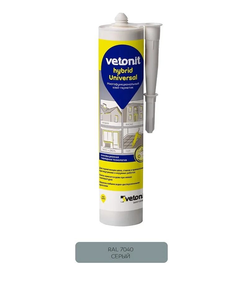 Герметик гибридный Ветонит Vetonit Hybrid Universal серый, 280мл — товар для строительных и ремонтных работ для строительных, монтажных и хозяйственных задач.