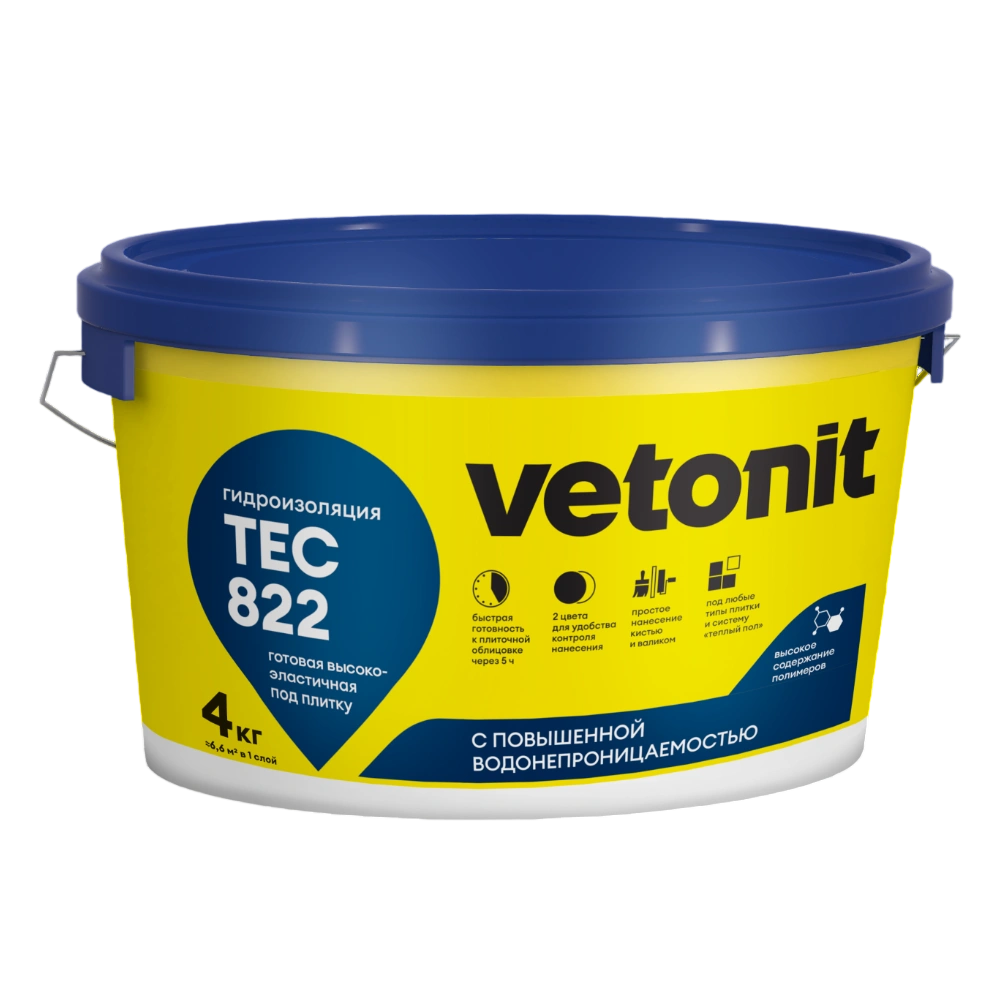 Гидроизоляция Ветонит тек серый Vetonit tec 822 grey, 4 кг — строительный материал для тепло-, паро- и гидроизоляционных работ.