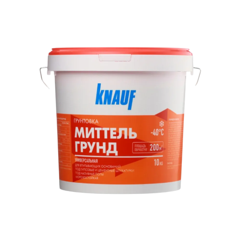 Грунтовка КНАУФ-Миттельгрунд предназначена для обработки поверхностей из газо- и пенобетона, керамического и силикатного кирпича, керамзито- и шлакоблоков, гипсовых и цементных штукатурок, бетонной, цементной и гипсовой стяжки. Эффективно снижает и регулирует впитывающую способность основания, способствует равномерному схватыванию раствора гипсовых и цементных смесей.