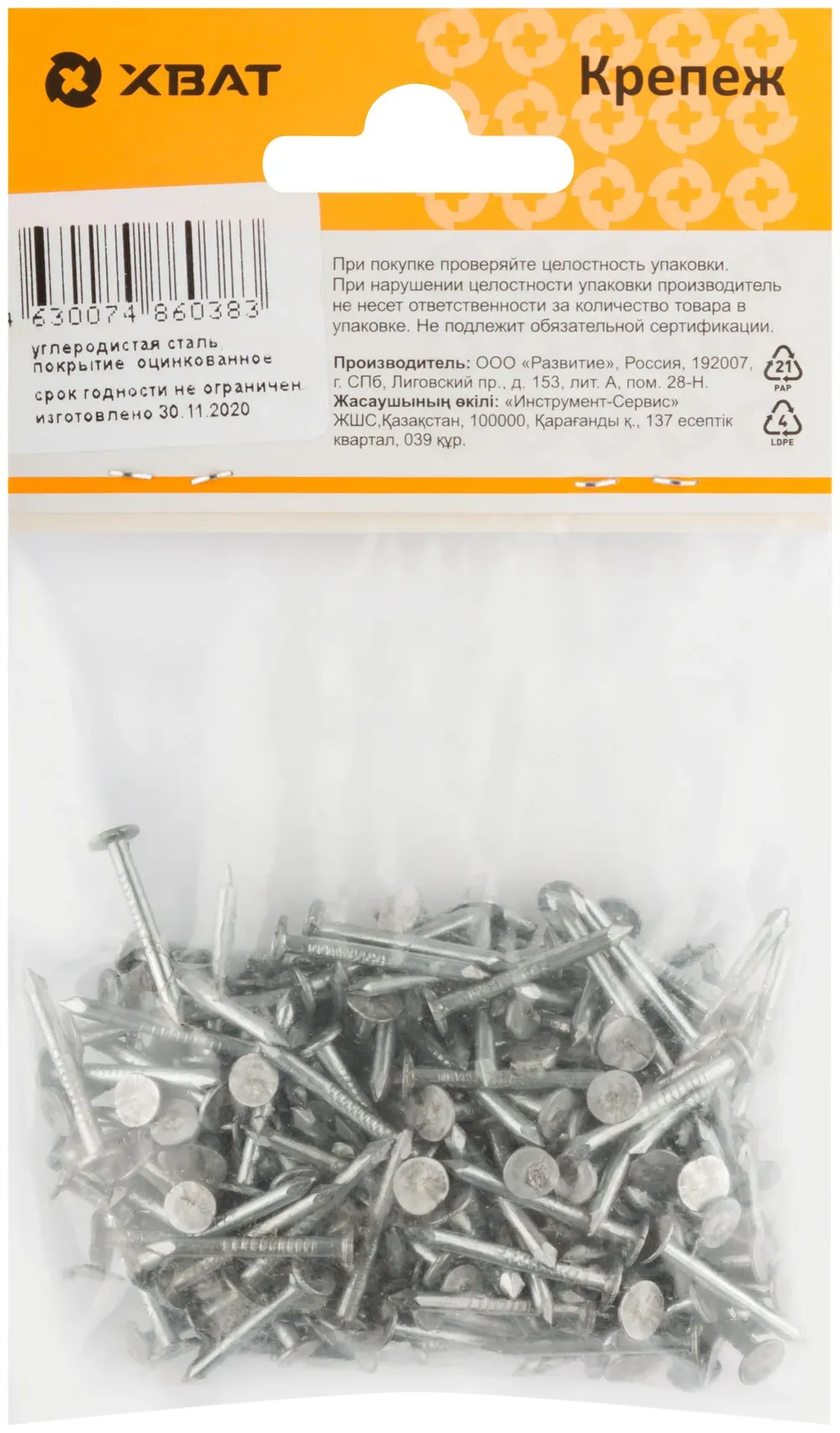 Гвоздь толевый, оцинкованный 2х20 120 гр. (фасовка) — крепёжный элемент для монтажа, фиксации и сборки конструкций.