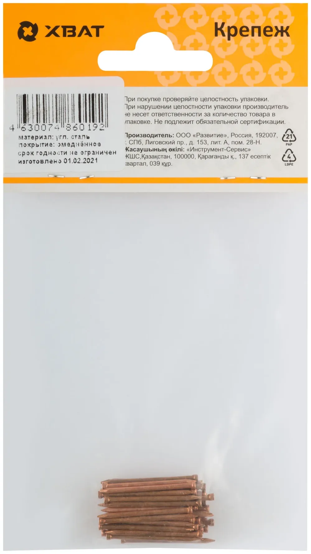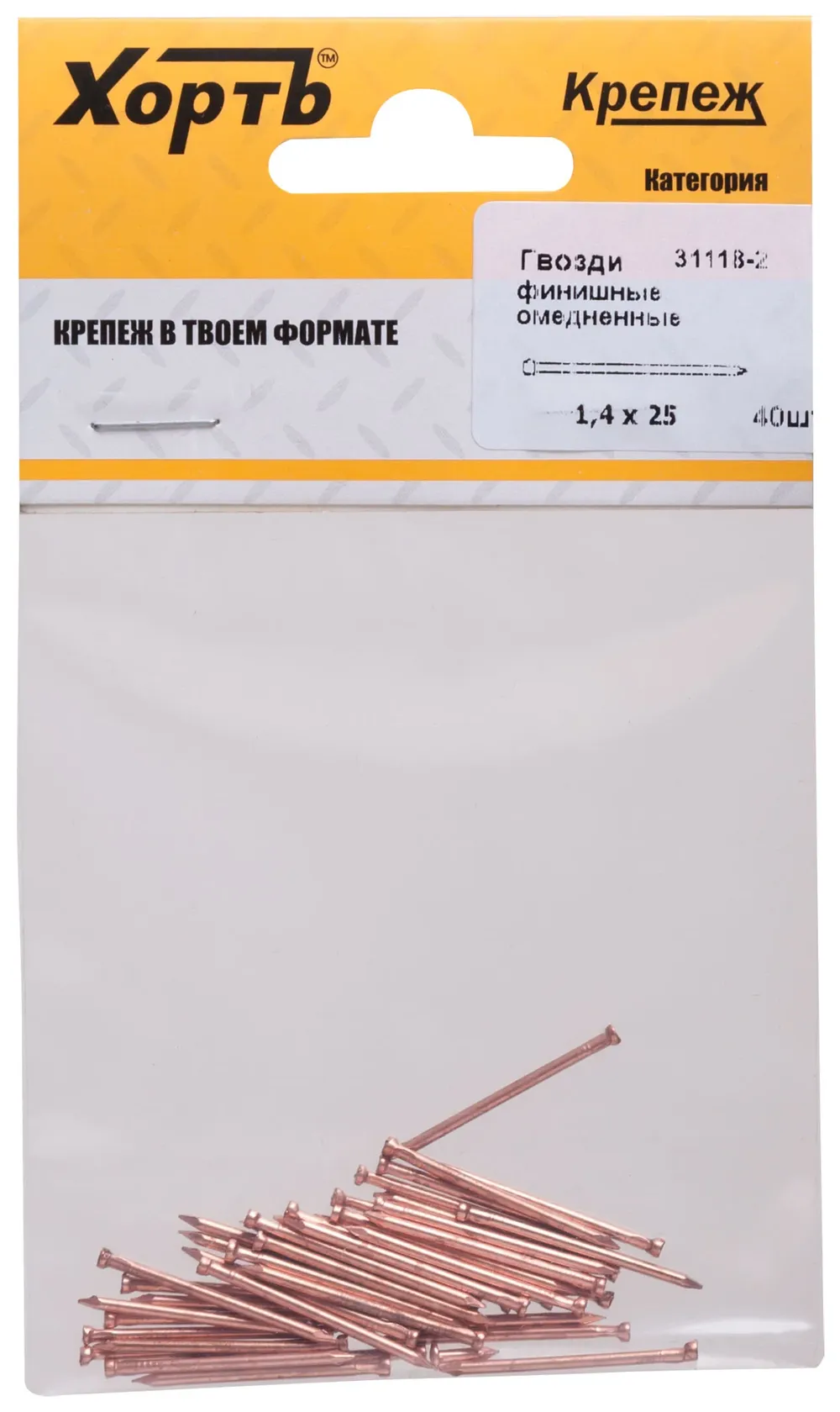 Гвозди финишные омедненные 1,4 х 25 (фасовка 40 10.) — крепёжный элемент для монтажа, фиксации и сборки конструкций.