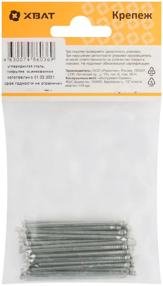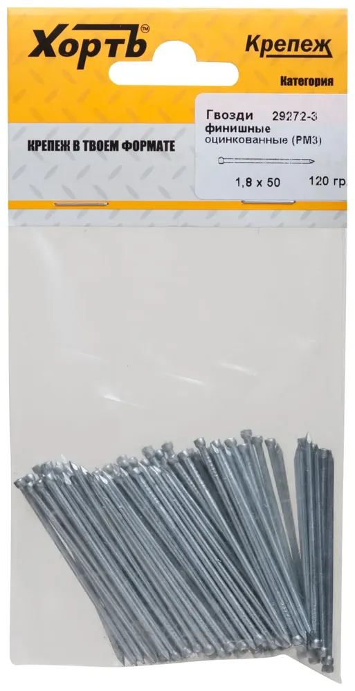 Гвозди финишные оцинкованные (РМ3) 1,8 (2)х50 120 гр. (фасовка) — крепёжный элемент для монтажа, фиксации и сборки конструкций.