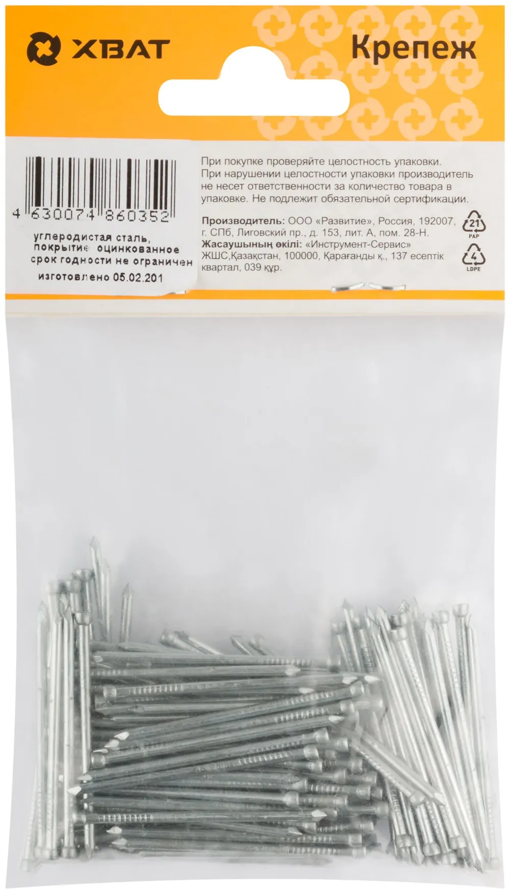 Гвозди финишные оцинкованные (РМ3) 1,8х40 120 гр. (фасовка) — крепёжный элемент для монтажа, фиксации и сборки конструкций.