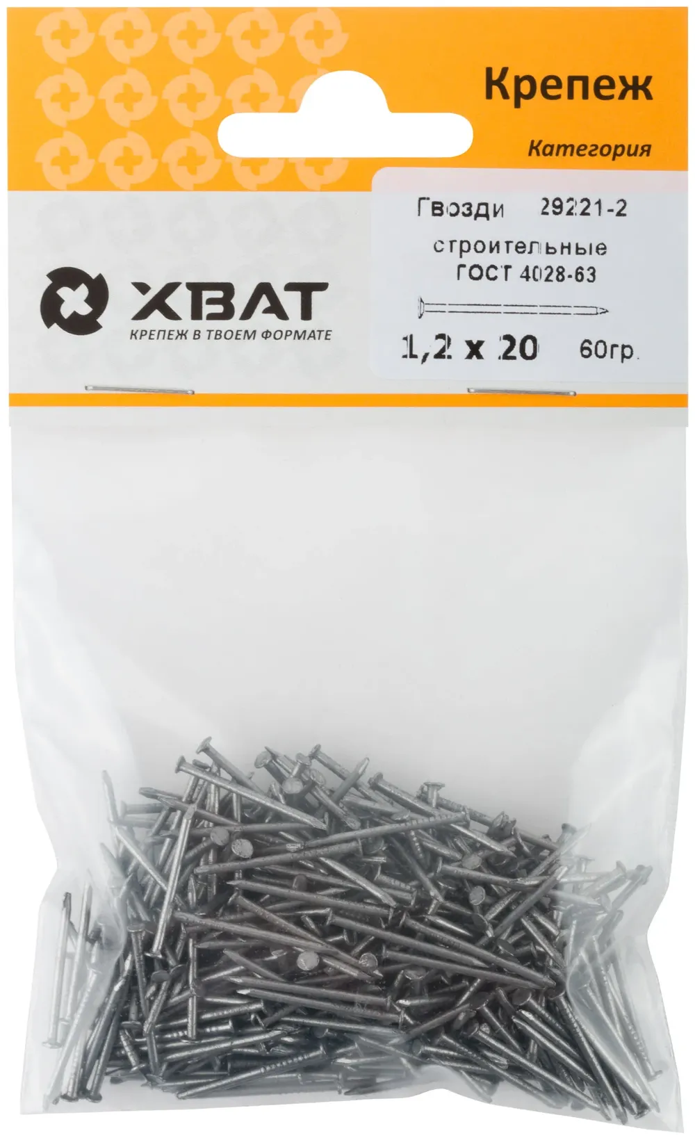 Гвозди строительные ГОСТ 4028-63 1,2х20 (фасовка 60 гр.) — крепёжный элемент для монтажа, фиксации и сборки конструкций.