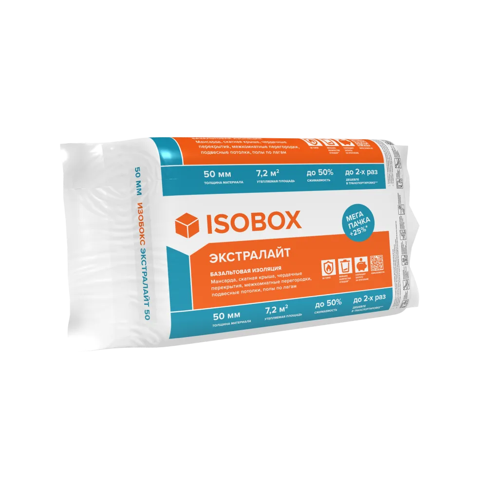 Утеплитель ИЗОБОКС ЭКСТРАЛАЙТ представляет собой теплоизоляционный материал, изготовленный на основе каменной ваты из горных пород габбро-базальтовой группы с добавлением низкофенольного связующего.